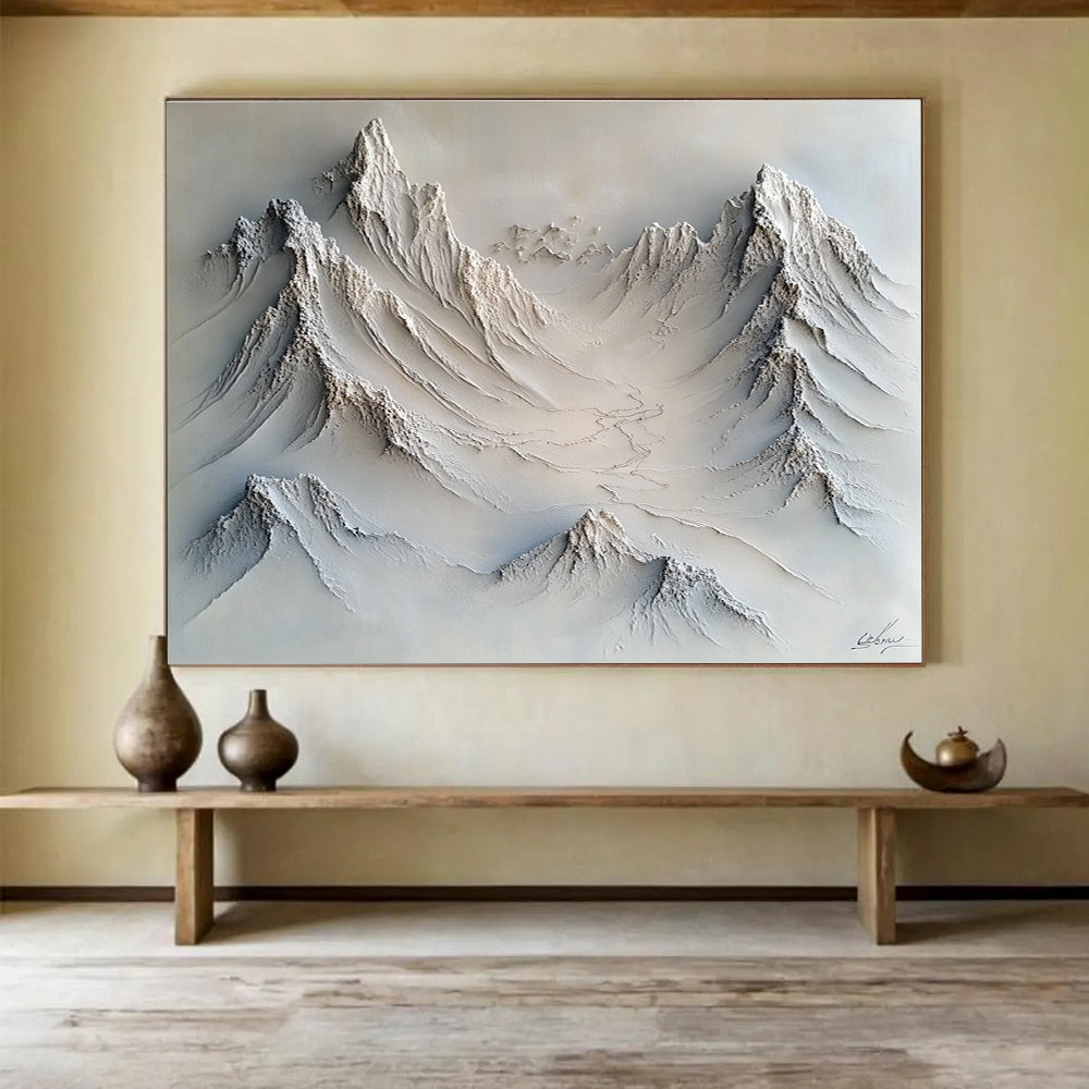 Enchanted by mountain landscapes, the artist crafts a 3D sculpture with intricate details. Each ridge and valley is carefully shaped to mimic real peaks. Ideal for a luxury ski lodge to enhance the alpine ambiance or a nature - lover’s home to celebrate mountain beauty.Handmade Acrylic/oil painting on canvas, Unframed/Not stretched. Packing: Rolled and shipped in a solid tube. The painting come with EXTRA 2-3 inch white border around for stretching or framing. Delivery time: You will receive the painting around 7-12 days( 3-5 days to finish the painting, 5-7 days to your home.by Fedex And Dhl)