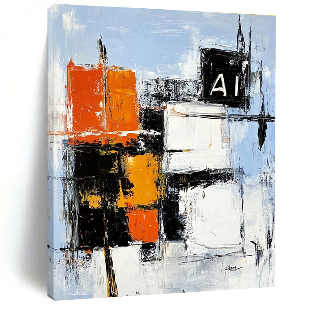 Drawn to the intersection of art and technology, the artist created a colorful abstract piece with the letters “AI”, suggesting innovation and modernity. The vibrant colors and dynamic composition reflect the energy of the tech world. Ideal for a tech - inspired office to inspire creative thinking or a modern art space to spark conversations about technology in art.Handmade Acrylic/oil painting on canvas, Unframed/Not stretched. Packing: Rolled and shipped in a solid tube. The painting come with EXTRA 2-3 inch white border around for stretching or framing. Delivery time: You will receive the painting around 7-12 days( 3-5 days to finish the painting, 5-7 days to your home.by Fedex And Dhl)