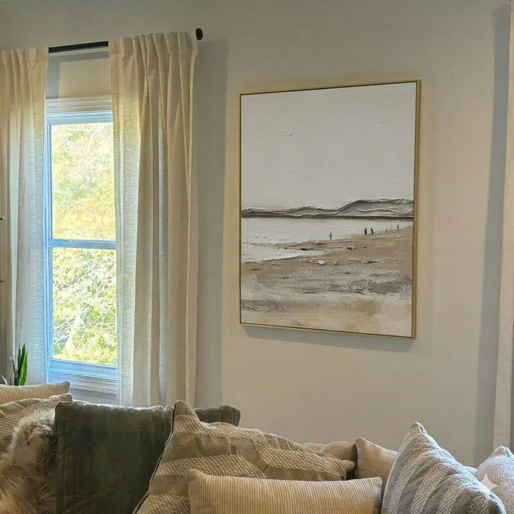With earthy tones and textured layers, the artist captures a beach scene in an abstract way. It brings the essence of the beach, like the sand and the sea, to life. Ideal for a coastal home to embrace the seaside vibe or a beachfront restaurant to enhance the coastal dining experience.Handmade Acrylic/oil painting on canvas, Unframed/Not stretched. Packing: Rolled and shipped in a solid tube. The painting come with EXTRA 2-3 inch white border around for stretching or framing. Delivery time: You will receive the painting around 7-12 days( 3-5 days to finish the painting, 5-7 days to your home.by Fedex And Dhl)