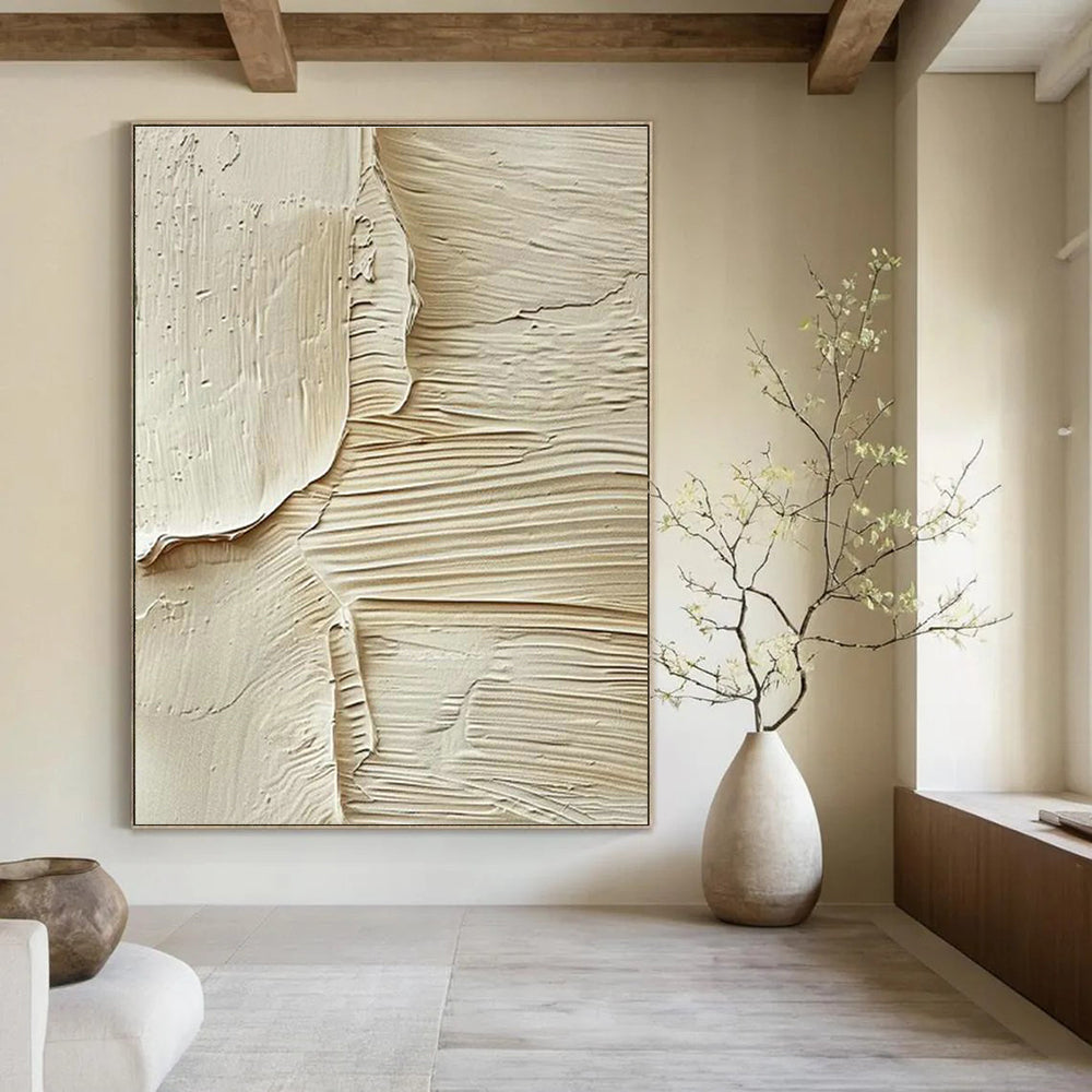 Beige Textured Art for Minimalist Home Entryway Walls DLZ0115
