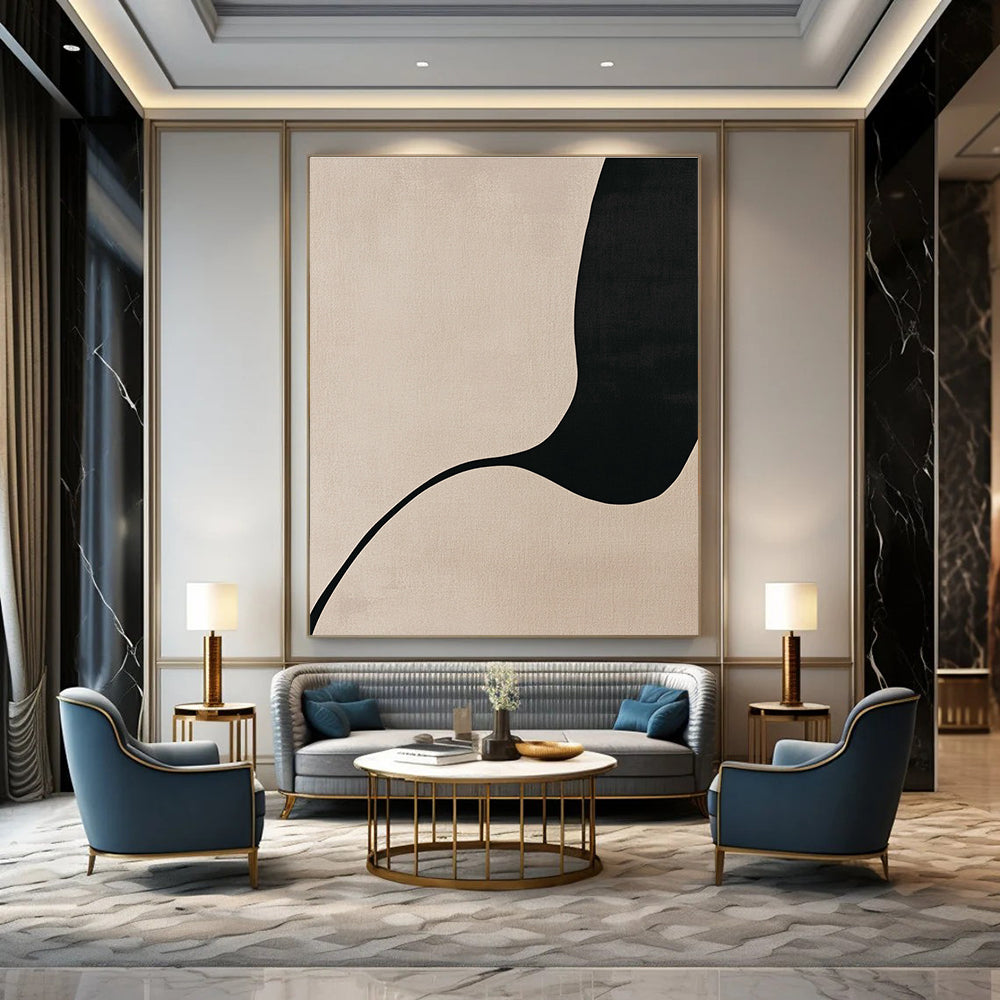 Inspired by the beauty of organic forms, the artist created a sleek, curved shape. The contrast between black and beige adds sophistication. It’s a piece that plays with negative space. In a modern bedroom, it adds a touch of elegance and serves as a subtle focal point. In a contemporary art gallery, it stands out as a minimalist yet impactful work, inviting viewers to appreciate the simplicity of form.Handmade Acrylic/oil painting on canvas, Unframed/Not stretched. Packing: Rolled and shipped in a solid tube. The painting come with EXTRA 2-3 inch white border around for stretching or framing. Delivery time: You will receive the painting around 7-12 days( 3-5 days to finish the painting, 5-7 days to your home.by Fedex And Dhl)