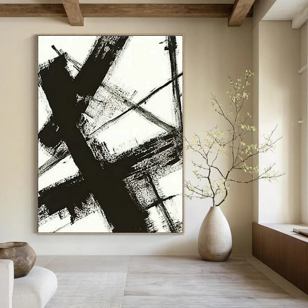 Bold, fluid black ink strokes on a white background create a minimalist yet impactful piece. In a minimalist gallery showcasing contemporary art, it stands out with its simplicity and artistic depth, inviting viewers to contemplate the beauty of negative space and abstract forms. Art enthusiasts will appreciate its understated elegance and the conversations it sparks about modern art. In a zen - inspired home study designed for focus and relaxation, this artwork promotes a sense of calm and clarity. As you work or reflect in this space, the minimalist composition helps clear the mind, fostering a peaceful environment conducive to productivity and mindfulness, making your study a haven of serenity.Handmade Acrylic/oil painting on canvas, Unframed/Not stretched. Packing: Rolled and shipped in a solid tube. The painting come with EXTRA 2-3 inch white border around for stretching or framing. Delivery time: You will receive the painting around 7-12 days( 3-5 days to finish the painting, 5-7 days to your home.by Fedex And Dhl)