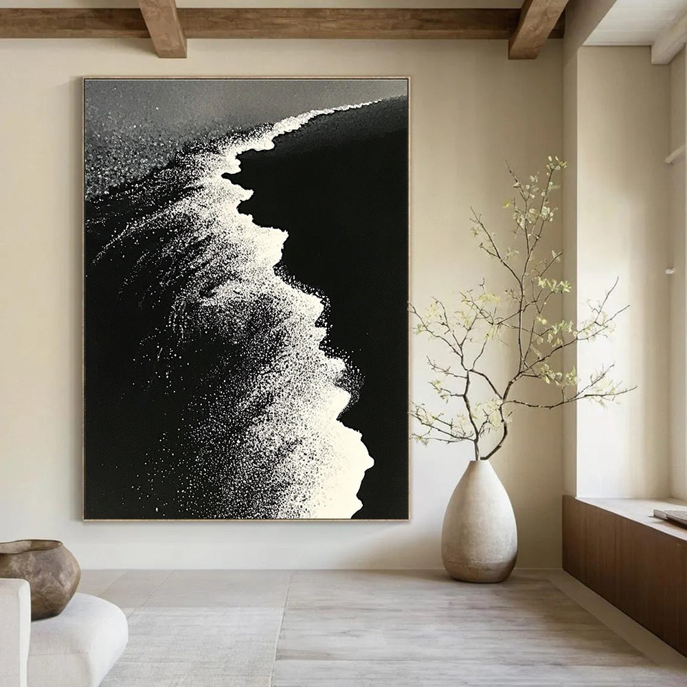 The artist was inspired by the power and mystery of ocean waves. Using a black - and - white palette, they aimed to capture the dynamic movement and texture of the water. The dots create a sense of the foamy surf. In a modern monochrome office, it adds a touch of artistic depth and a calming, yet powerful ambiance. In a sophisticated home library, it serves as a thought - provoking piece, complementing the quiet and intellectual atmosphere.Handmade Acrylic/oil painting on canvas, Unframed/Not stretched. Packing: Rolled and shipped in a solid tube. The painting come with EXTRA 2-3 inch white border around for stretching or framing. Delivery time: You will receive the painting around 7-12 days( 3-5 days to finish the painting, 5-7 days to your home.by Fedex And Dhl)