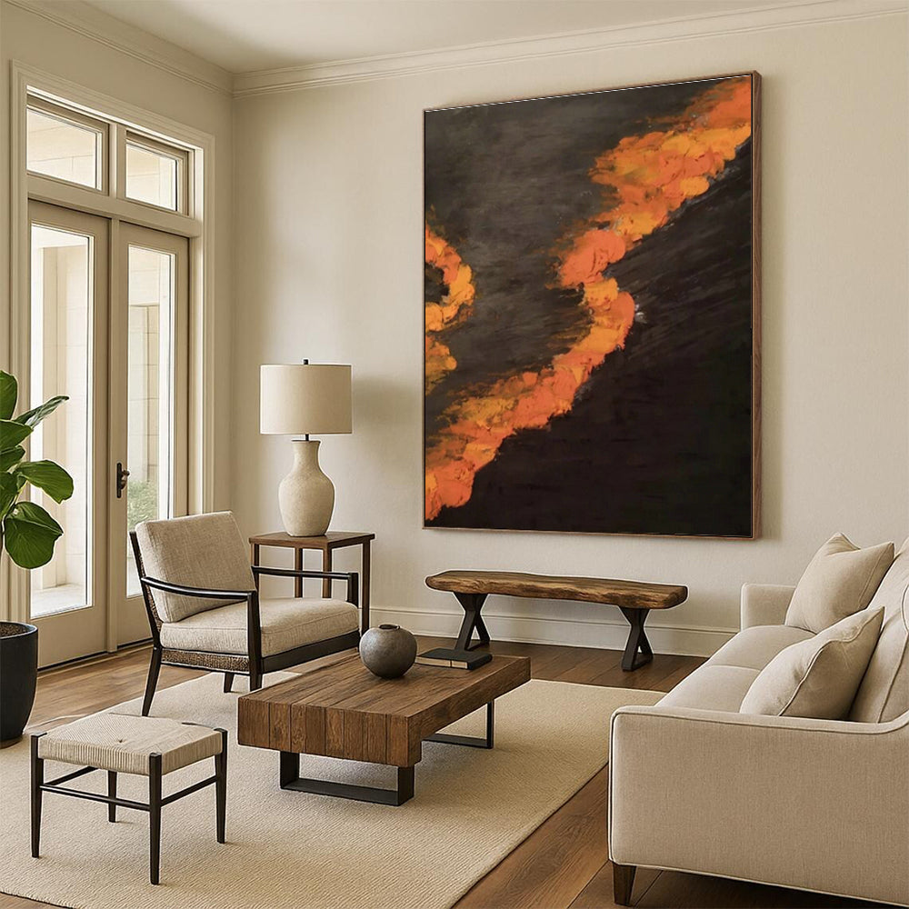 Fiery hues and dark contrast form a dynamic, energetic piece. In an urban art studio with graffiti walls and 24 - hour Creative sessions, it matches the passionate, creative energy—perfect for inspiring late - night masterpieces. At a late - night diner with neon signs and comfort food, it fits the gritty, nostalgic vibe. The bold colors make creating art or grabbing a midnight snack feel like a dive into a vibrant, artistic current.Handmade Acrylic/oil painting on canvas, Unframed/Not stretched. Packing: Rolled and shipped in a solid tube. The painting come with EXTRA 2-3 inch white border around for stretching or framing. Delivery time: You will receive the painting around 7-12 days( 3-5 days to finish the painting, 5-7 days to your home.by Fedex And Dhl)
