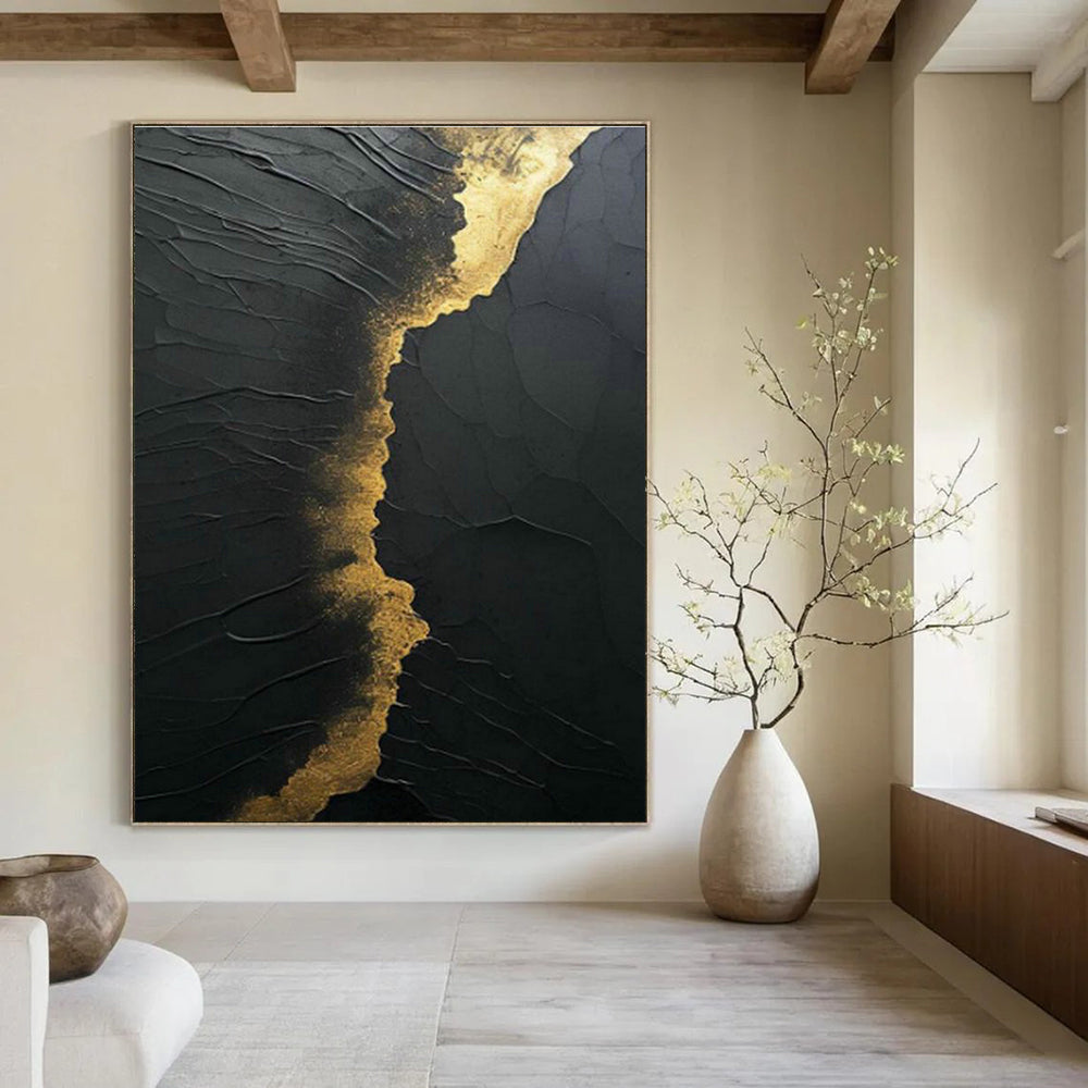 Black - Gold Textured Art for Luxury Hotel Lobby Accents DLZ0261