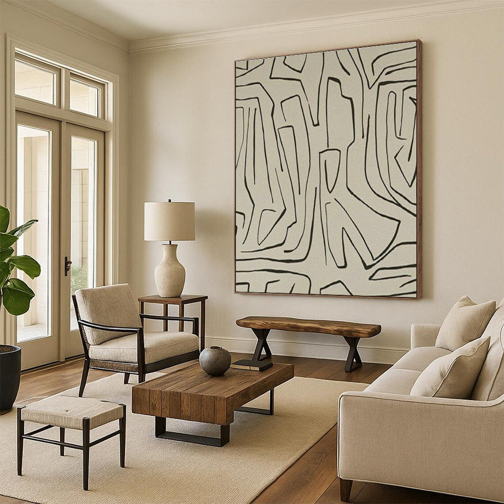 Drawn to free - flowing lines, the artist created organic shapes on beige. They aimed to inspire creativity. Great for a bohemian café to add an artistic vibe or a creative studio to spark innovative thinking.Handmade Acrylic/oil painting on canvas, Unframed/Not stretched. Packing: Rolled and shipped in a solid tube. The painting come with EXTRA 2-3 inch white border around for stretching or framing. Delivery time: You will receive the painting around 7-12 days( 3-5 days to finish the painting, 5-7 days to your home.by Fedex And Dhl)
