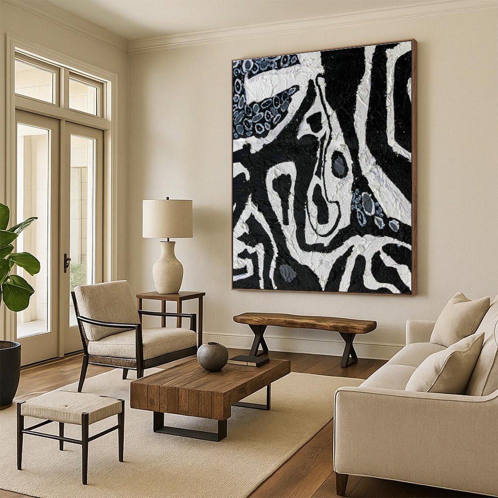 Black - White Textured Art for Industrial Café Restroom Walls DLZ0052