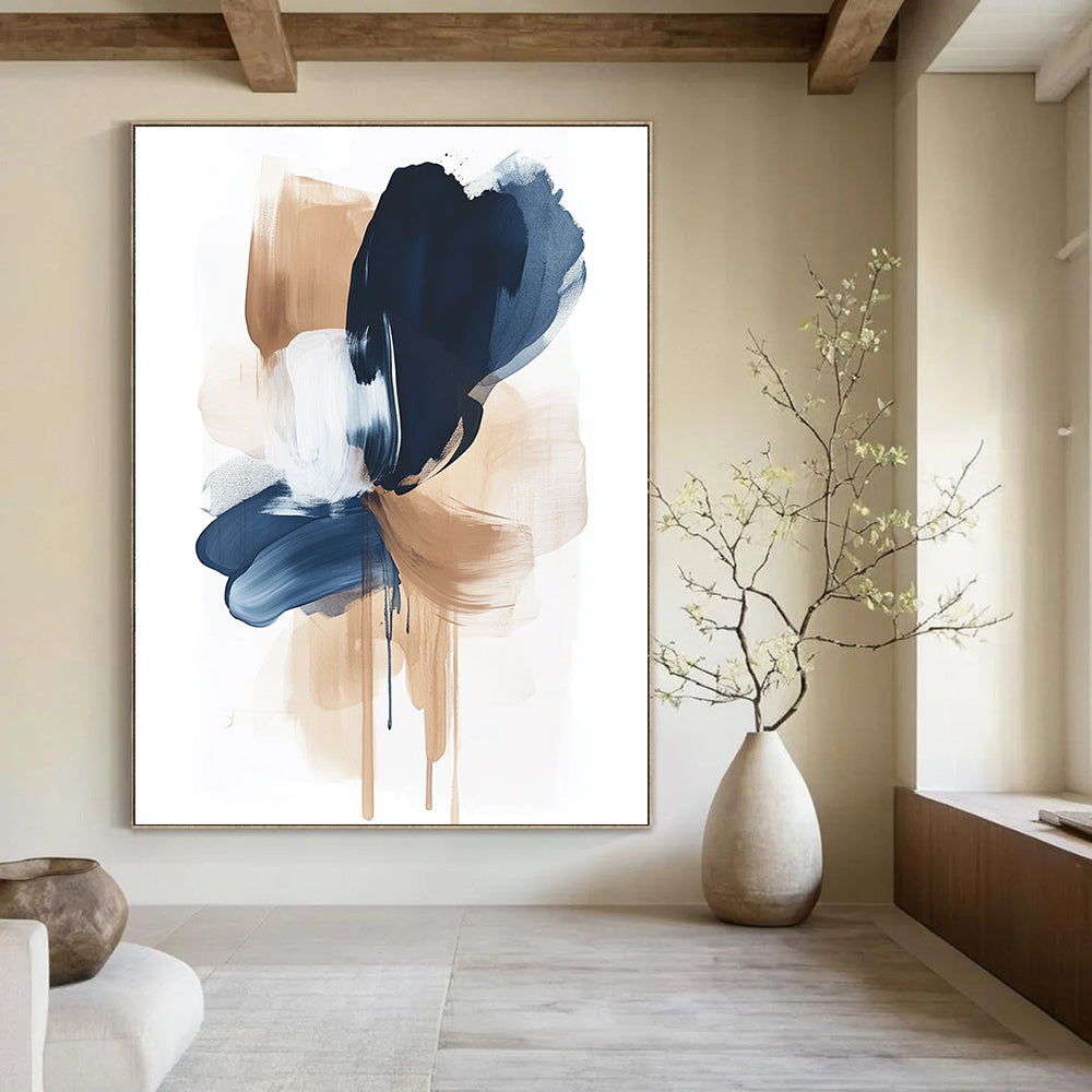 The artist was drawn to the colors of the sea and sand, using bold brushstrokes to create an abstract representation of coastal vibes. The drips and blends aim to capture the movement of waves. In a coastal - inspired home office, it brings the calming essence of the ocean indoors, boosting productivity. In an art gallery café, it adds an artistic touch to the space, enhancing the overall dining and art - viewing experience.Handmade Acrylic/oil painting on canvas, Unframed/Not stretched. Packing: Rolled and shipped in a solid tube. The painting come with EXTRA 2-3 inch white border around for stretching or framing. Delivery time: You will receive the painting around 7-12 days( 3-5 days to finish the painting, 5-7 days to your home.by Fedex And Dhl)