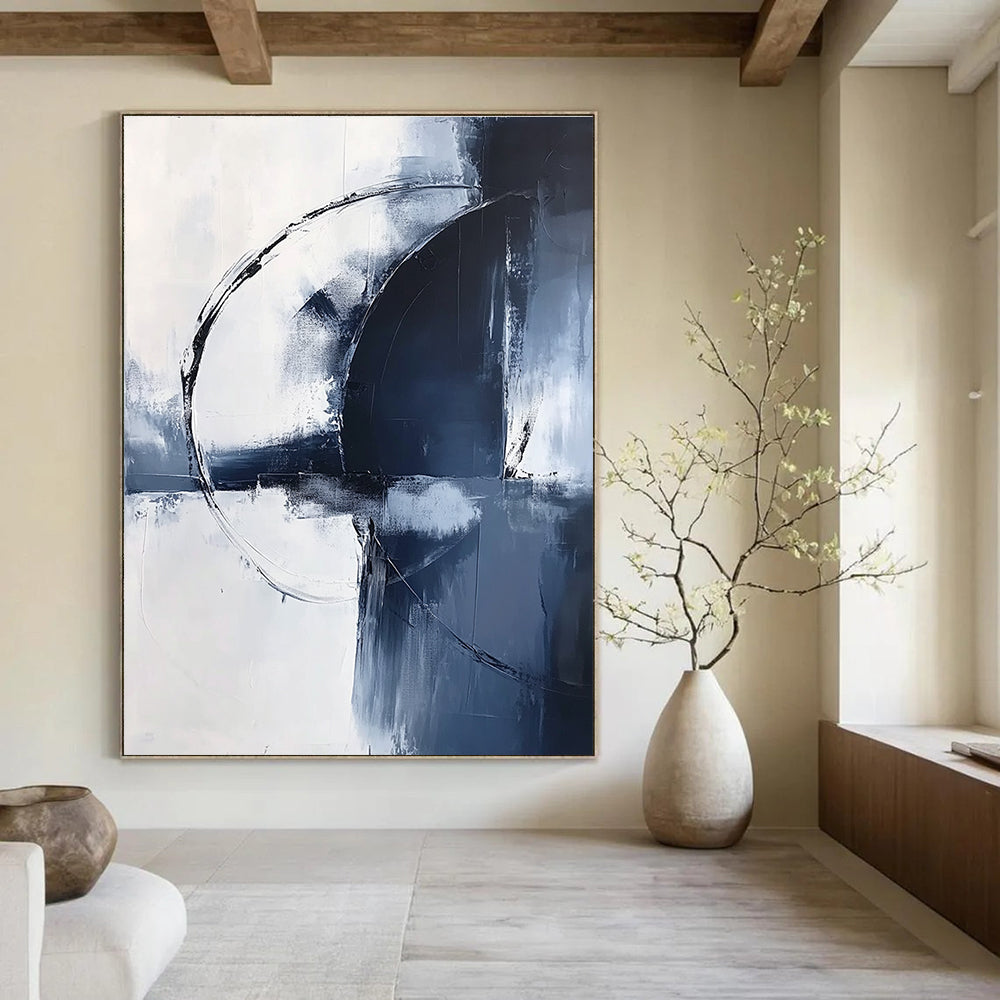 Drawn to the calming effect of blue and white tones and the simplicity of circular forms, the artist created a serene, textured abstraction. The soft brushstrokes and cool colors evoke a sense of peace. In a coastal - inspired home, it brings the tranquility of the ocean indoors, enhancing the relaxed, beachy vibe. In an art - decorated spa, it promotes relaxation and a sense of calm, helping guests unwind and connect with a peaceful, artistic atmosphere.Handmade Acrylic/oil painting on canvas, Unframed/Not stretched. Packing: Rolled and shipped in a solid tube. The painting come with EXTRA 2-3 inch white border around for stretching or framing. Delivery time: You will receive the painting around 7-12 days( 3-5 days to finish the painting, 5-7 days to your home.by Fedex And Dhl)