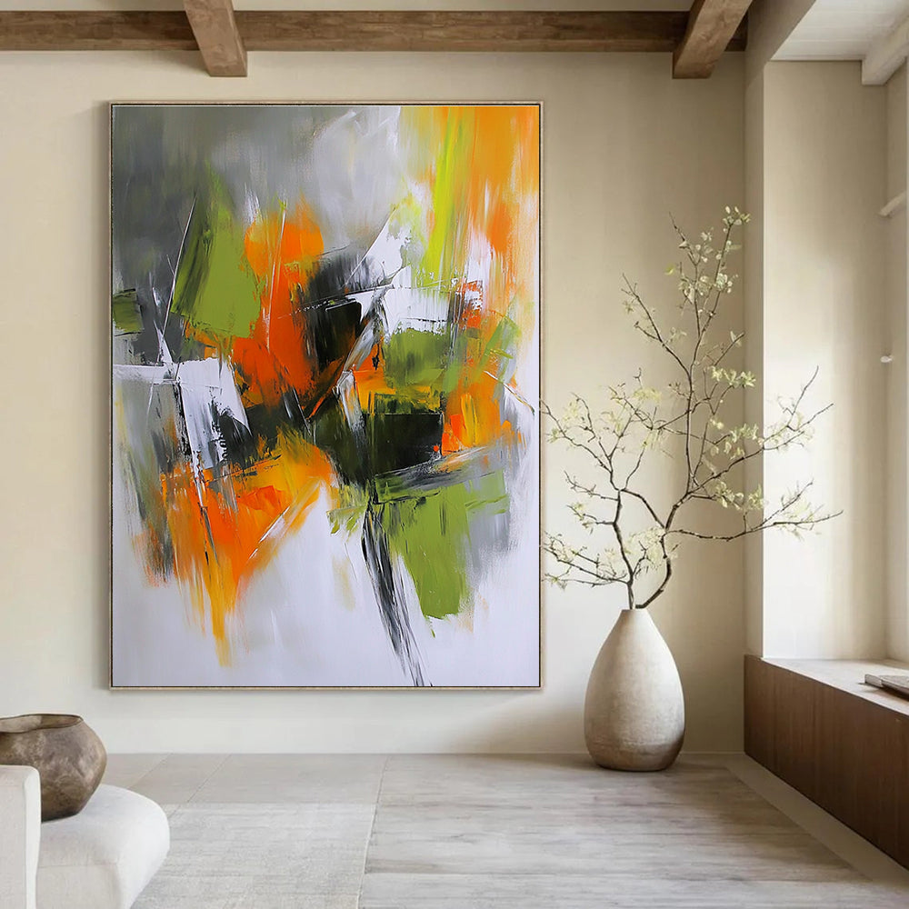 Bold Green and Orange Abstract for Modern Living Room & Art Gallery Café STSC769