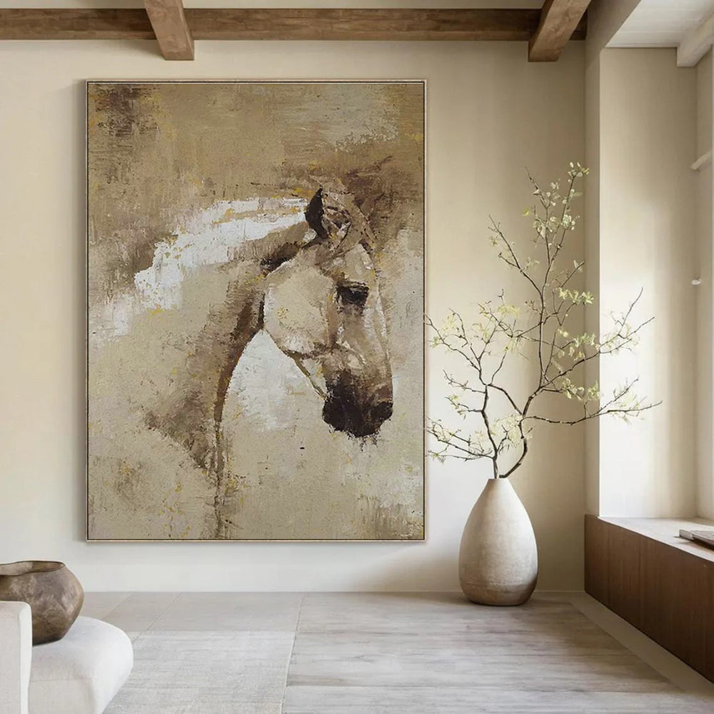 The brown and white horse head oil painting captures the grace and strength of a horse. In an equestrian club, it resonates with the love of horses. Hung in a lounge area, it creates a warm, inviting atmosphere for members to relax and share their equestrian stories. The earthy tones blend well with wooden decor and riding gear displays. In a rustic living room, it adds a touch of nature - inspired charm. The painting’s muted colors complement a space with reclaimed wood furniture and cozy, plaid textiles, bringing the beauty of the countryside indoors. Whether in a club for fellow horse lovers or in a home for rustic warmth, this art celebrates the majesty of horses.Handmade Acrylic/oil painting on canvas, Unframed/Not stretched. Packing: Rolled and shipped in a solid tube. The painting come with EXTRA 2-3 inch white border around for stretching or framing. Delivery time: You will receive the painting around 7-12 days( 3-5 days to finish the painting, 5-7 days to your home.by Fedex And Dhl)