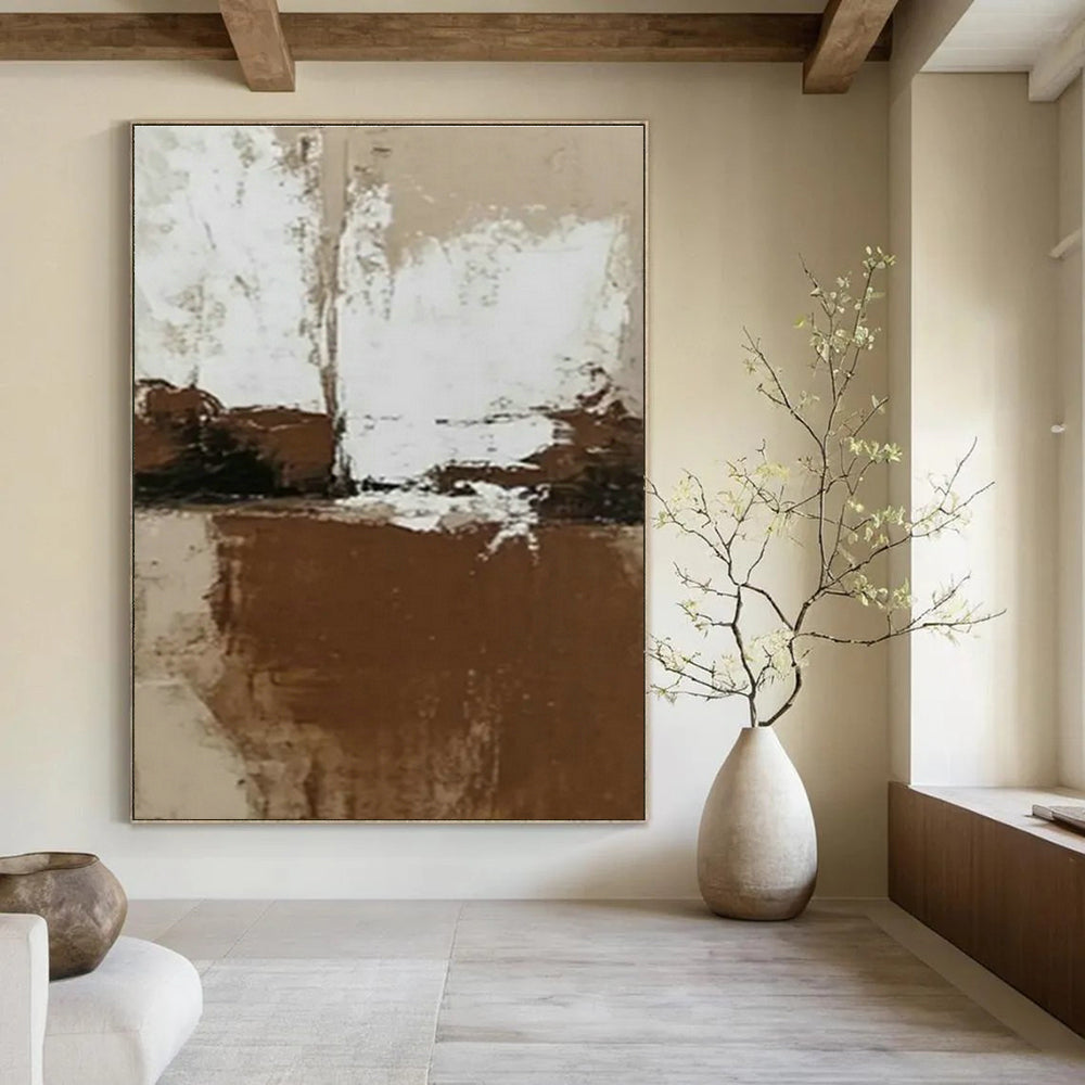 Clean, understated contrasts of brown and white craft a sleek, modern vibe. In an industrial - chic office with exposed brick walls, metal desks, and Edison bulbs, it adds a touch of sophistication to the workspace—perfect for focused meetings, inspiring clear - headed discussions. At a monochrome bedroom with black - and - white linens, minimalist furniture, and soft ambient lighting, it matches the serene, stylish atmosphere. The simple yet impactful composition makes it suitable for spaces that value calm and contemporary design, turning work sessions or restful nights into a journey through a refined, artistic space.Handmade Acrylic/oil painting on canvas, Unframed/Not stretched. Packing: Rolled and shipped in a solid tube. The painting come with EXTRA 2-3 inch white border around for stretching or framing. Delivery time: You will receive the painting around 7-12 days( 3-5 days to finish the painting, 5-7 days to your home.by Fedex And Dhl)