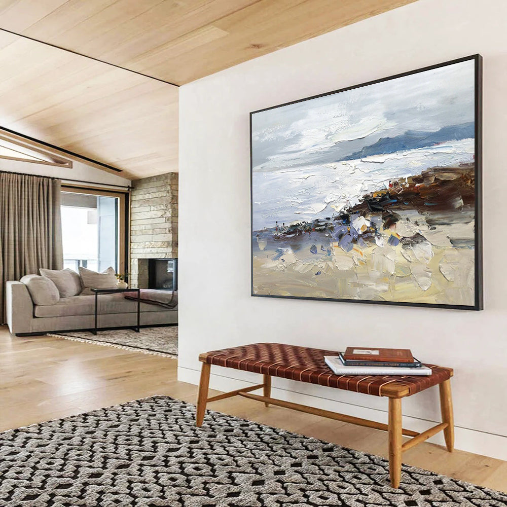 Thick paint, beachgoers, and a sandy shore. Suits a DIY seafood spot, it’s hands - on and artistic, matching the casual, make - your - own - fun vibe of the place.Handmade Acrylic/oil painting on canvas, Unframed/Not stretched. Packing: Rolled and shipped in a solid tube. The painting come with EXTRA 2-3 inch white border around for stretching or framing. Delivery time: You will receive the painting around 7-12 days( 3-5 days to finish the painting, 5-7 days to your home.by Fedex And Dhl)
