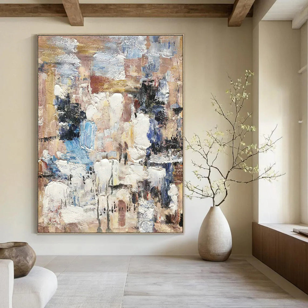 Layers of soft hues blend in this textured abstract piece, evoking a dreamy, artistic vibe. Ideal for a bohemian café—hang it above mismatched chairs and woven tapestries to amplify the free - spirited ambiance, letting patrons get lost in its color story over coffee. In a creative studio, it sparks inspiration on a blank wall, pairing with eclectic decor and art supplies to fuel innovative ideas during brainstorming sessions. A perfect pick for spaces craving artistic warmth.Handmade Acrylic/oil painting on canvas, Unframed/Not stretched. Packing: Rolled and shipped in a solid tube. The painting come with EXTRA 2-3 inch white border around for stretching or framing. Delivery time: You will receive the painting around 7-12 days( 3-5 days to finish the painting, 5-7 days to your home.by Fedex And Dhl)