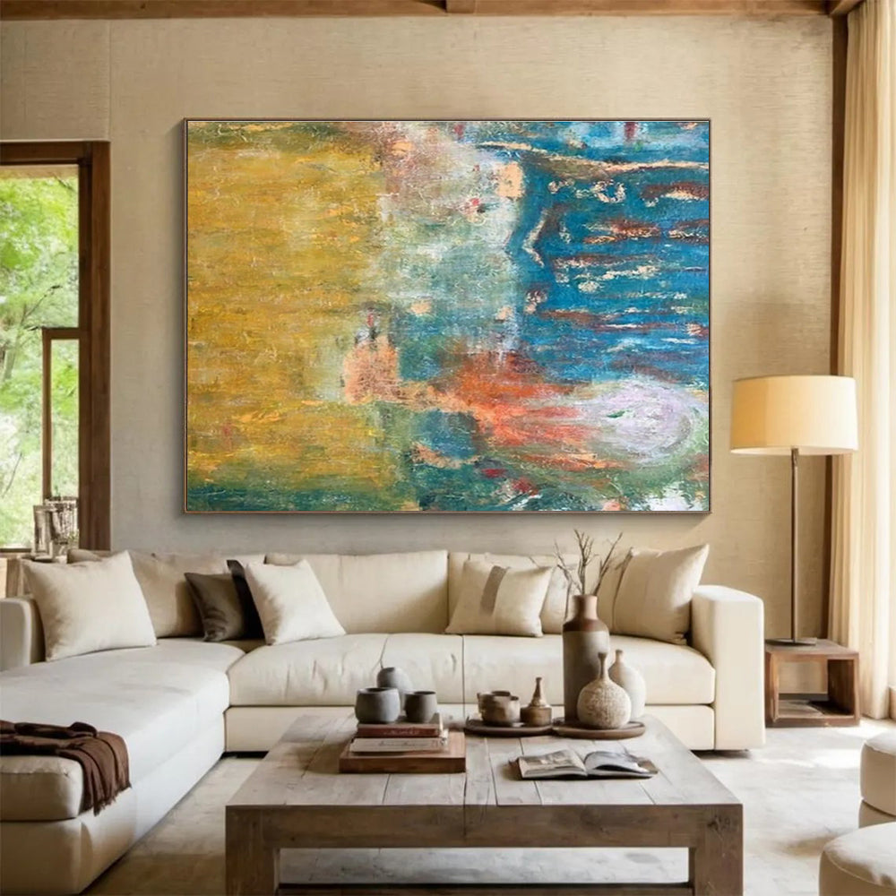 Subtle color transitions create a cozy mood. Suited for café communal areas, it fosters connection, making coffee chats feel like shared artistic experiences.Handmade Acrylic/oil painting on canvas, Unframed/Not stretched. Packing: Rolled and shipped in a solid tube. The painting come with EXTRA 2-3 inch white border around for stretching or framing. Delivery time: You will receive the painting around 7-12 days( 3-5 days to finish the painting, 5-7 days to your home.by Fedex And Dhl)