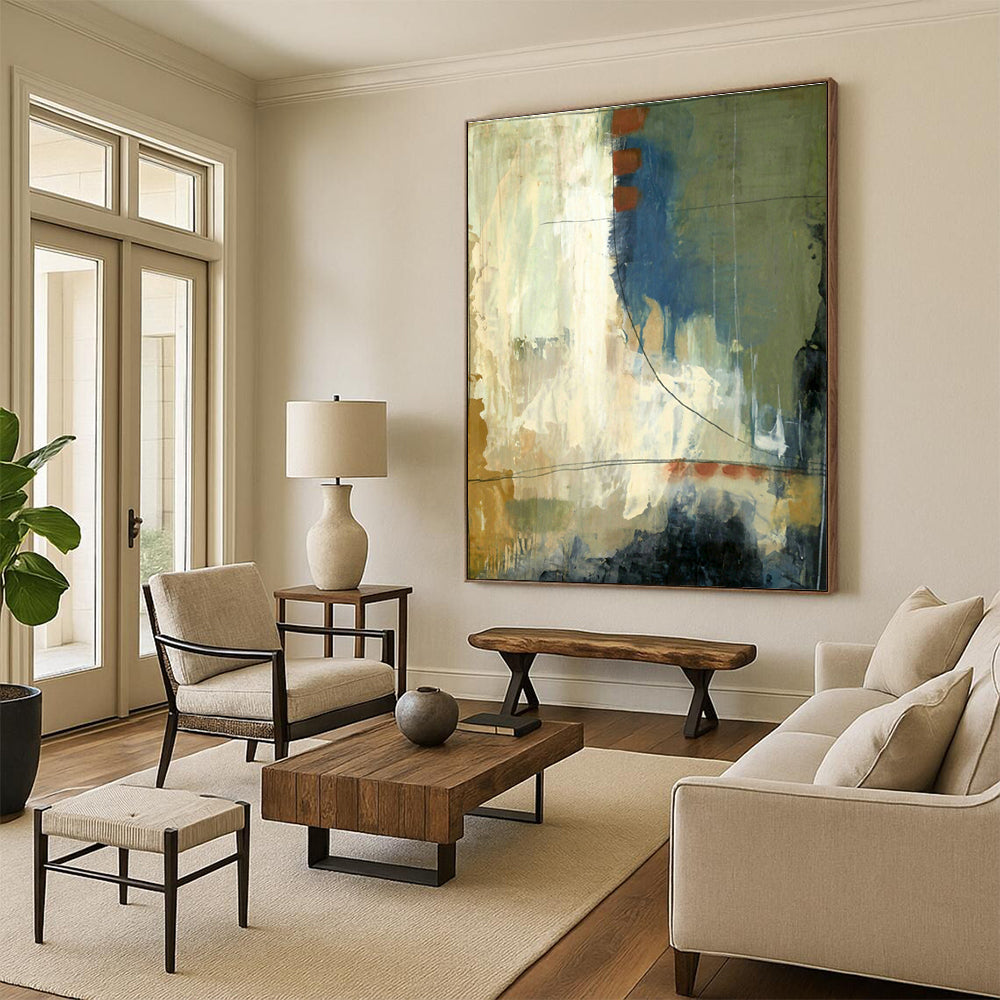 A mix of earthy tones and bold lines creates a dynamic, contemporary vibe. In a modern office breakroom, with sleek furniture and motivational decor, it sparks creativity—perfect for employees to recharge with visual inspiration. At an artistic coffeehouse with exposed brick and indie music, it matches the creative, laid - back atmosphere. The abstract forms and color contrasts make it a conversation starter, whether over a meeting break or a latte, blending work - life balance and artistic flair.Handmade Acrylic/oil painting on canvas, Unframed/Not stretched. Packing: Rolled and shipped in a solid tube. The painting come with EXTRA 2-3 inch white border around for stretching or framing. Delivery time: You will receive the painting around 7-12 days( 3-5 days to finish the painting, 5-7 days to your home.by Fedex And Dhl)