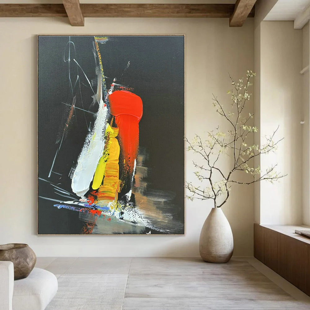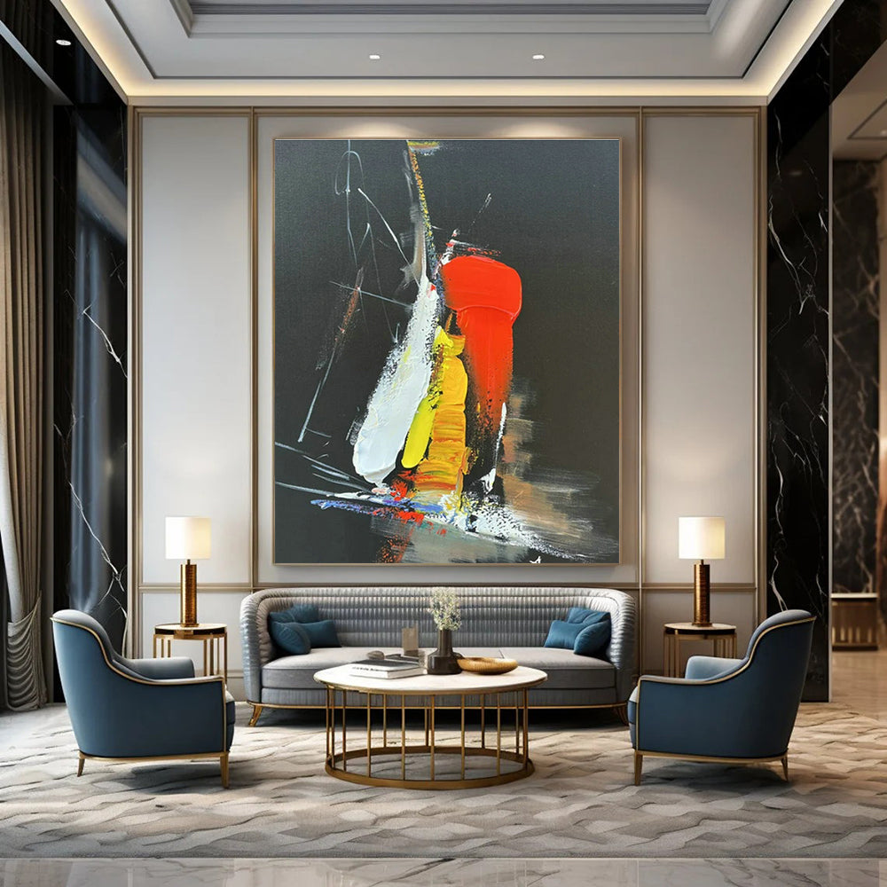 Bright colors against a black background make this artwork vibrant and eye - catching. In a trendy nightclub, with its flashing lights and dance floors, it adds to the venue’s energy. The colors can be seen as a reflection of the night’s excitement, and it can be a focal point for club - goers. In a creative agency, it inspires employees. The bold colors and abstract forms encourage out - of - the - box thinking, perfect for brainstorming sessions.Handmade Acrylic/oil painting on canvas, Unframed/Not stretched. Packing: Rolled and shipped in a solid tube. The painting come with EXTRA 2-3 inch white border around for stretching or framing. Delivery time: You will receive the painting around 7-12 days( 3-5 days to finish the painting, 5-7 days to your home.by Fedex And Dhl)