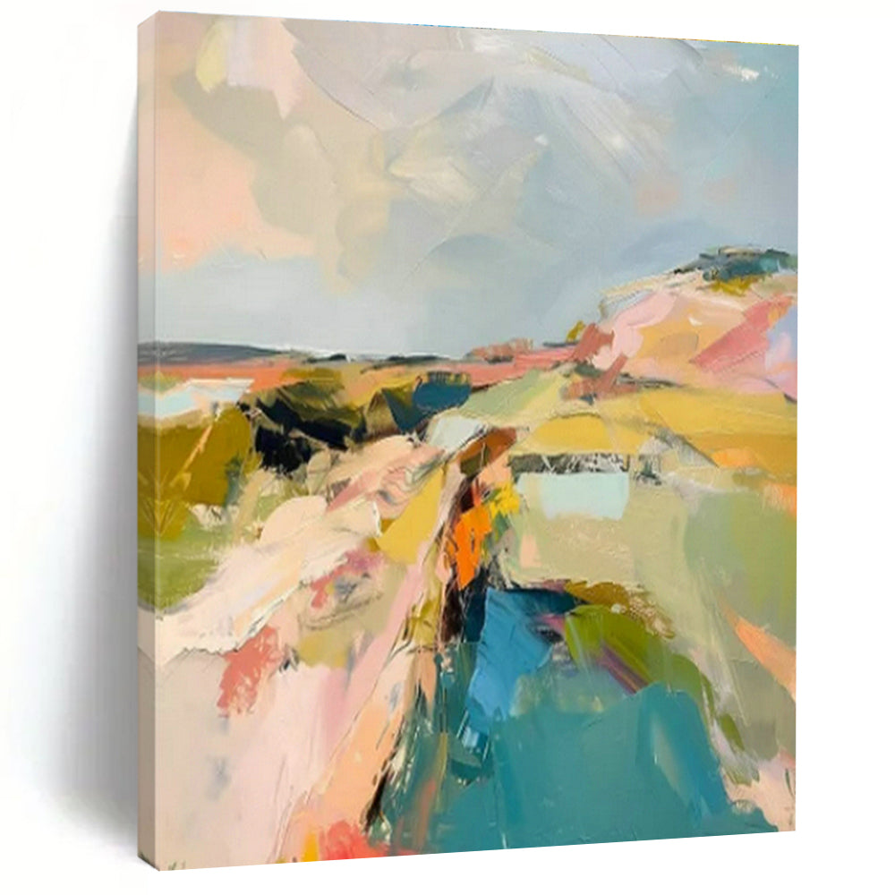 Soft, blended colors form a dreamy abstract landscape. In a bohemian home living room, with tapestries and mix - matched pillows, it adds a whimsical touch. Weekends relaxing with family feel like a stroll through a painterly meadow. In an artistic bed - and - breakfast, with themed rooms and local art, it enhances the creative vibe. Guests waking up to the art feel immersed in a colorful, artistic getaway, making their stay memorable.Handmade Acrylic/oil painting on canvas, Unframed/Not stretched. Packing: Rolled and shipped in a solid tube. The painting come with EXTRA 2-3 inch white border around for stretching or framing. Delivery time: You will receive the painting around 7-12 days( 3-5 days to finish the painting, 5-7 days to your home.by Fedex And Dhl)