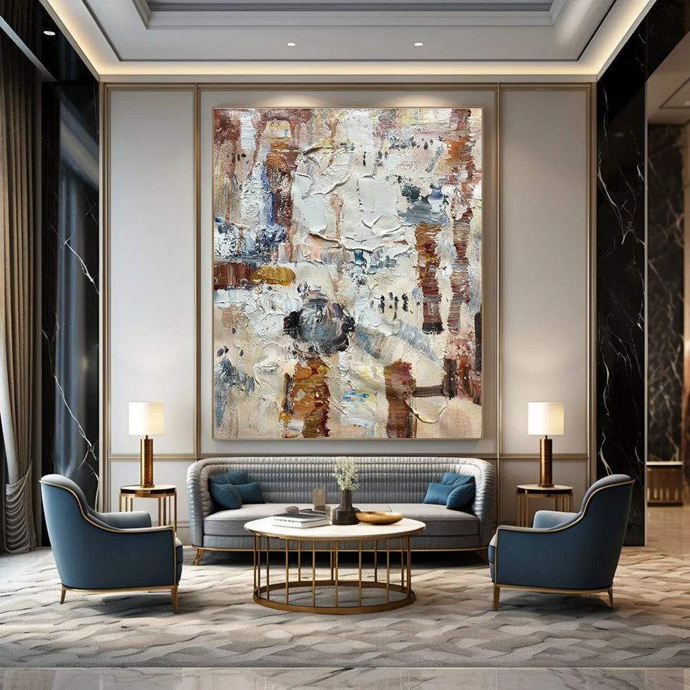 This tactile painting, with its thick layers and varied colors, invites viewers to explore its texture. In a creative studio, hang it in the brainstorming area. The painting’s chaotic beauty will inspire creativity, encouraging artists and designers to think outside the box. In a community art center, place it in the gallery space. Its approachable, yet complex design will attract visitors of all ages, sparking conversations about art and texture. Ideal for spaces that foster creativity and community engagement.Handmade Acrylic/oil painting on canvas, Unframed/Not stretched. Packing: Rolled and shipped in a solid tube. The painting come with EXTRA 2-3 inch white border around for stretching or framing. Delivery time: You will receive the painting around 7-12 days( 3-5 days to finish the painting, 5-7 days to your home.by Fedex And Dhl)