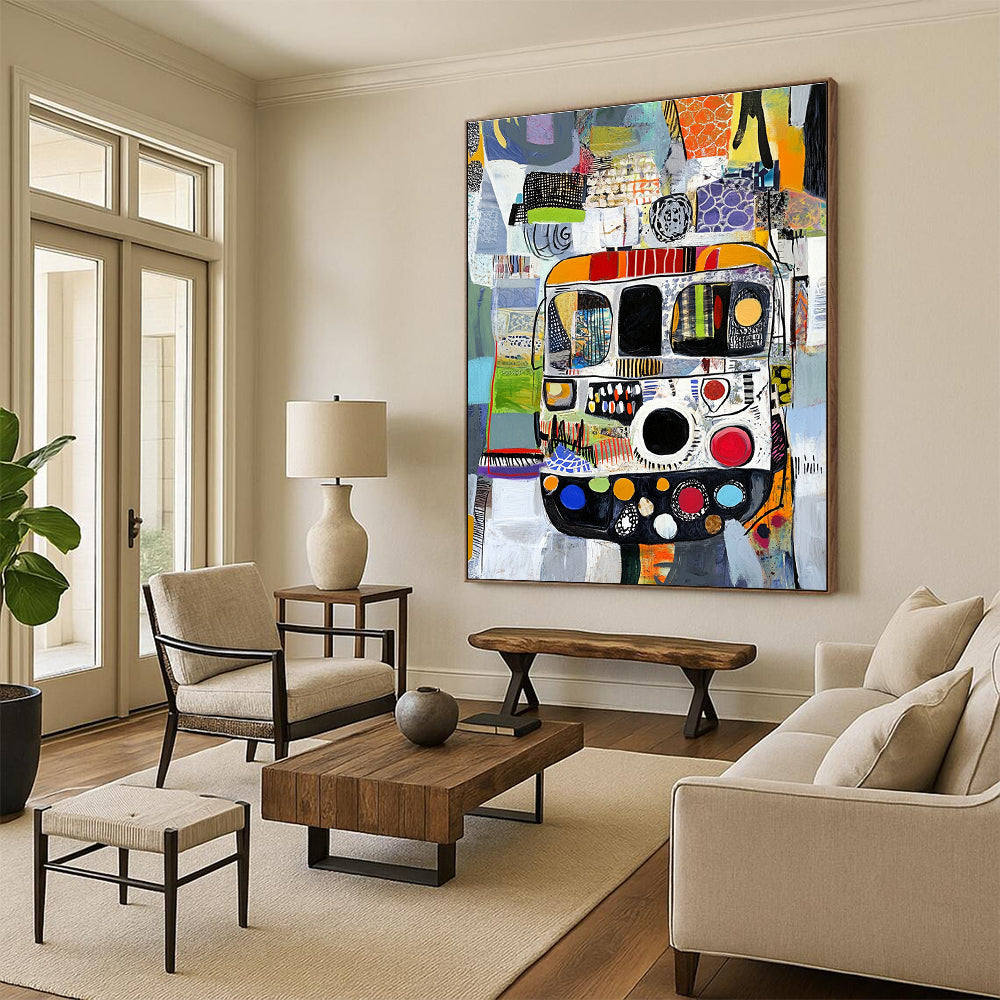 The artist, inspired by global street scenes, crafted this bus using a collage of patterns and colors from diverse cultures. Layers of hand - cut textures and painted details merge to tell a story of movement. Ideal for a bohemian café to spark wanderlust or a travel - themed gallery to celebrate cultural fusion.Handmade Acrylic/oil painting on canvas, Unframed/Not stretched. Packing: Rolled and shipped in a solid tube. The painting come with EXTRA 2-3 inch white border around for stretching or framing. Delivery time: You will receive the painting around 7-12 days( 3-5 days to finish the painting, 5-7 days to your home.by Fedex And Dhl)