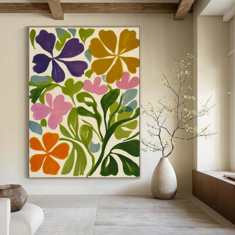 Bright, cheerful flowers in a variety of colors celebrate nature’s beauty. In a bohemian garden house filled with eclectic decor, handmade crafts, and a love for nature, it enhances the free - spirited vibe. The house, with its garden - view windows and relaxed gatherings, becomes more enchanting with this floral piece. It can inspire residents to pick fresh flowers, arrange them, and embrace the bohemian love for nature and art. In a women’s wellness studio offering yoga, meditation, and self - care workshops, it creates a calming and empowering atmosphere. The flowers symbolize growth, beauty, and self - care, aligning with the studio’s mission. Women can practice yoga or meditation surrounded by this vibrant floral art, feeling connected to nature and their inner selves.Handmade Acrylic/oil painting on canvas, Unframed/Not stretched. Packing: Rolled and shipped in a solid tube. The painting come with EXTRA 2-3 inch white border around for stretching or framing. Delivery time: You will receive the painting around 7-12 days( 3-5 days to finish the painting, 5-7 days to your home.by Fedex And Dhl)