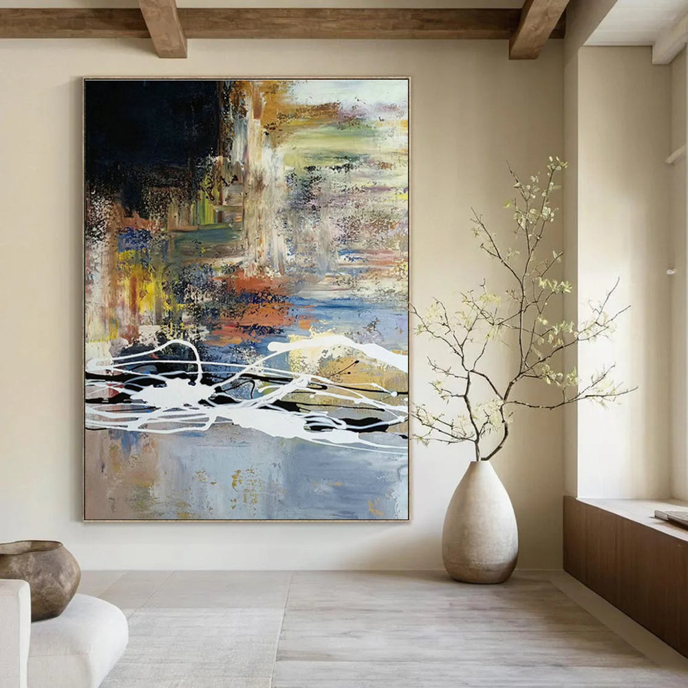 Full of colorful splashes and lines, this art is a creativity booster. In the living room, hang it to show your artistic side. It matches bohemian or avant - garde decor, adding vibrancy to parties. In a creative space, display it to spark innovation. The chaotic yet beautiful design encourages thinking outside the box, ideal for brainstorming sessions.Handmade Acrylic/oil painting on canvas, Unframed/Not stretched. Packing: Rolled and shipped in a solid tube. The painting come with EXTRA 2-3 inch white border around for stretching or framing. Delivery time: You will receive the painting around 7-12 days( 3-5 days to finish the painting, 5-7 days to your home.by Fedex And Dhl)