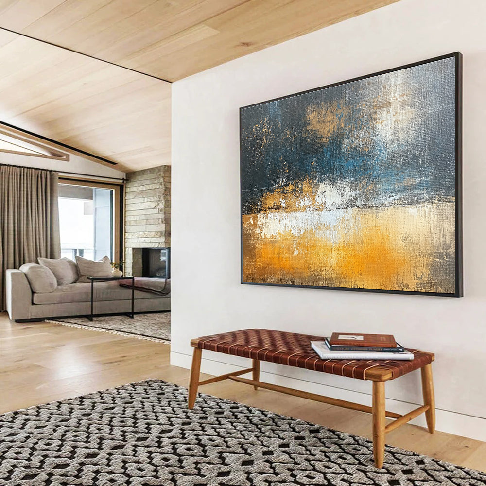 The artist played with dark blues, grays, and gold, letting the paint create random patterns. It’s meant to spark intrigue. Perfect for an industrial - chic bar to match its edgy style or a moody art studio to inspire creative thinking.Handmade Acrylic/oil painting on canvas, Unframed/Not stretched. Packing: Rolled and shipped in a solid tube. The painting come with EXTRA 2-3 inch white border around for stretching or framing. Delivery time: You will receive the painting around 7-12 days( 3-5 days to finish the painting, 5-7 days to your home.by Fedex And Dhl)