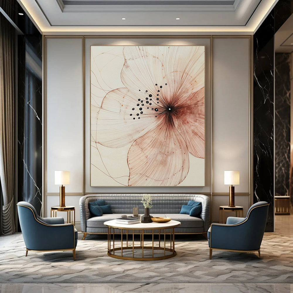 Inspired by the intricate details of flowers, the artist drew this delicate, brown - ink flower on a light background. The fine lines and simple form highlight the beauty of nature’s design. In a botanical illustration studio, it can serve as a reference for studying flower anatomy and artistic rendering techniques. In a minimalist home bedroom, it adds a touch of gentle, floral artistry to the calm, simple decor.Handmade Acrylic/oil painting on canvas, Unframed/Not stretched. Packing: Rolled and shipped in a solid tube. The painting come with EXTRA 2-3 inch white border around for stretching or framing. Delivery time: You will receive the painting around 7-12 days( 3-5 days to finish the painting, 5-7 days to your home.by Fedex And Dhl)