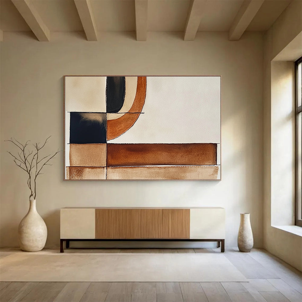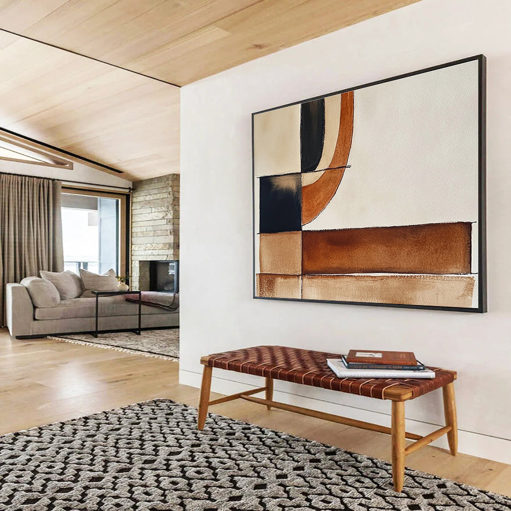 Enchanted by the warmth of earth tones, the artist crafted geometric shapes using shades of brown, black, and beige. The hand - painted texture and simple forms give a cozy and organic feel. Ideal for a rustic - chic café to add a touch of homeliness or a bohemian home to complement the free - spirited decor.Handmade Acrylic/oil painting on canvas, Unframed/Not stretched. Packing: Rolled and shipped in a solid tube. The painting come with EXTRA 2-3 inch white border around for stretching or framing. Delivery time: You will receive the painting around 7-12 days( 3-5 days to finish the painting, 5-7 days to your home.by Fedex And Dhl)