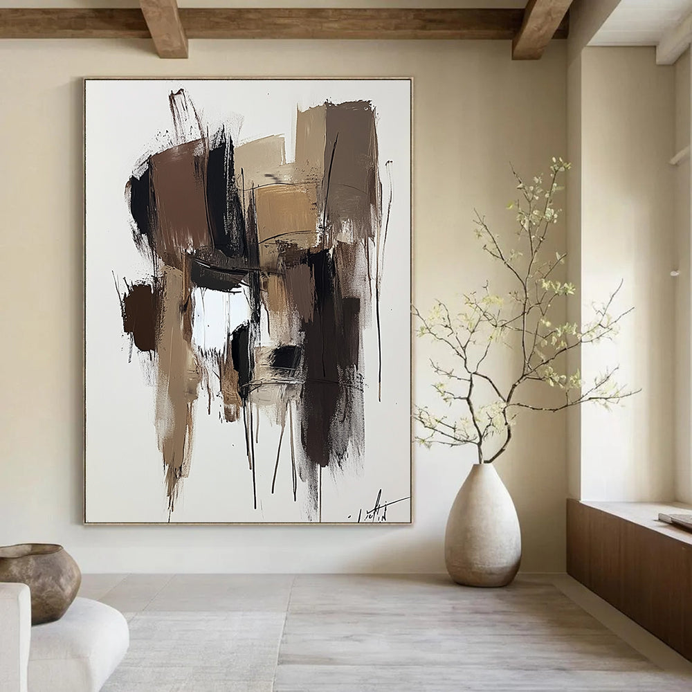 Inspired by natural tones, the artist painted an abstract piece with earthy drips, suggesting the passage of time and connection to nature. The muted colors and organic forms create a sense of calm. Great for a rustic home to bring the outdoors in or a nature - inspired office to promote a peaceful, focused mindset.Handmade Acrylic/oil painting on canvas, Unframed/Not stretched. Packing: Rolled and shipped in a solid tube. The painting come with EXTRA 2-3 inch white border around for stretching or framing. Delivery time: You will receive the painting around 7-12 days( 3-5 days to finish the painting, 5-7 days to your home.by Fedex And Dhl)