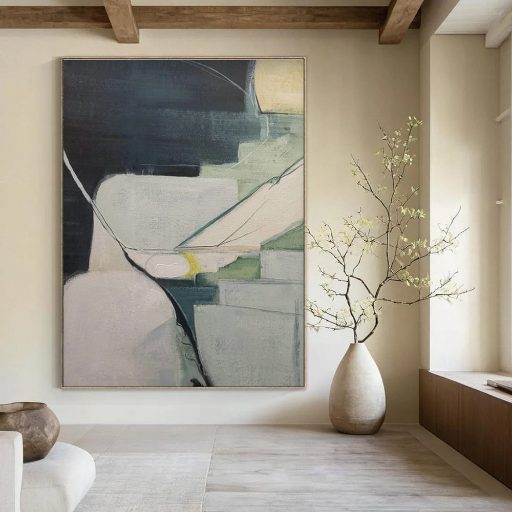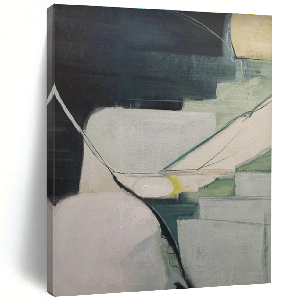 Soft greens, grays, and clean lines create a calming, structured vibe. In a Scandinavian - style wellness center, with light wood and aromatherapy diffusers, it enhances relaxation—yoga sessions feel more centered, the painting’s geometry guiding mindful breathing. In a modern corporate office, with glass partitions and minimalist desks, it projects professionalism with a creative twist, its cool tones keeping minds sharp during high - stakes meetings.Handmade Acrylic/oil painting on canvas, Unframed/Not stretched. Packing: Rolled and shipped in a solid tube. The painting come with EXTRA 2-3 inch white border around for stretching or framing. Delivery time: You will receive the painting around 7-12 days( 3-5 days to finish the painting, 5-7 days to your home.by Fedex And Dhl)