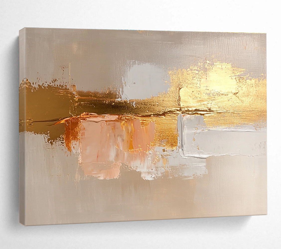 Captivated by the allure of gold, the artist combined gold leaf with soft, muted tones. The thick, textured brushstrokes create a sense of luxury and depth, aiming to make a statement. Perfect for a luxury hotel lobby to impress guests or a modern dining room to add a touch of glamorous elegance.Handmade Acrylic/oil painting on canvas, Unframed/Not stretched. Packing: Rolled and shipped in a solid tube. The painting come with EXTRA 2-3 inch white border around for stretching or framing. Delivery time: You will receive the painting around 7-12 days( 3-5 days to finish the painting, 5-7 days to your home.by Fedex And Dhl)
