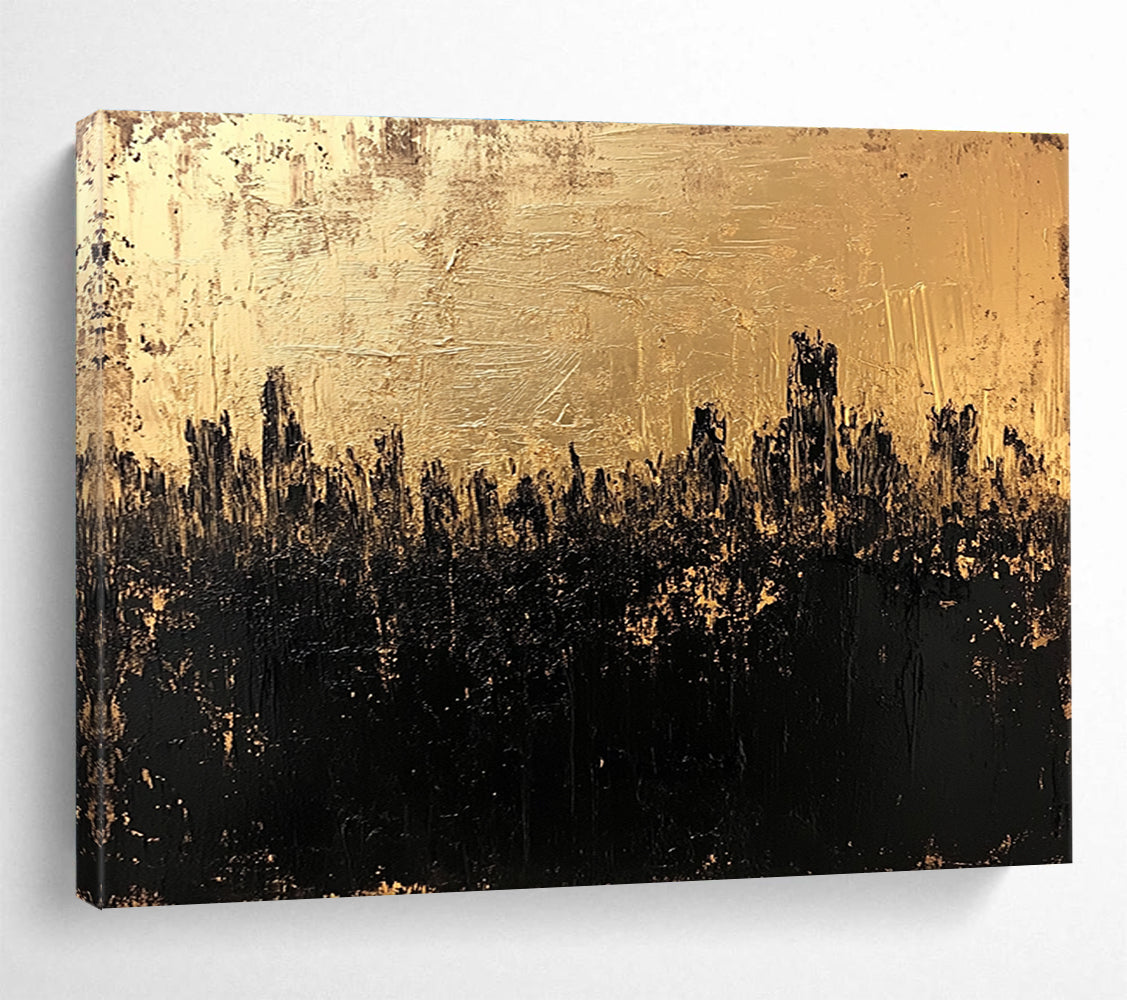 Drawn to cityscapes, the artist used gold and black to create a textured skyline. It evokes urban mystery. Perfect for an urban loft to enhance the city - chic vibe or an art - loving office to display modern city art.Handmade Acrylic/oil painting on canvas, Unframed/Not stretched. Packing: Rolled and shipped in a solid tube. The painting come with EXTRA 2-3 inch white border around for stretching or framing. Delivery time: You will receive the painting around 7-12 days( 3-5 days to finish the painting, 5-7 days to your home.by Fedex And Dhl)