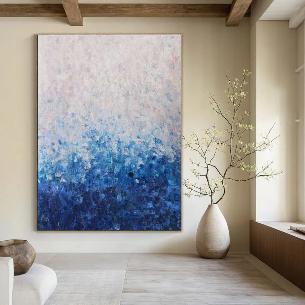 The gradual change of blue from light to dark is like the sea and sky, bringing a sense of tranquility. In a coastal bedroom, hang it above the bed, matching with white bedding and nautical - style decorations to create a peaceful sleeping environment, as if sleeping by the sea. In a meditation space, place it on the wall opposite the meditation mat, helping people calm their minds and enter a deep meditation state, ideal for spaces pursuing relaxation and inner peace.Handmade Acrylic/oil painting on canvas, Unframed/Not stretched. Packing: Rolled and shipped in a solid tube. The painting come with EXTRA 2-3 inch white border around for stretching or framing. Delivery time: You will receive the painting around 7-12 days( 3-5 days to finish the painting, 5-7 days to your home.by Fedex And Dhl)