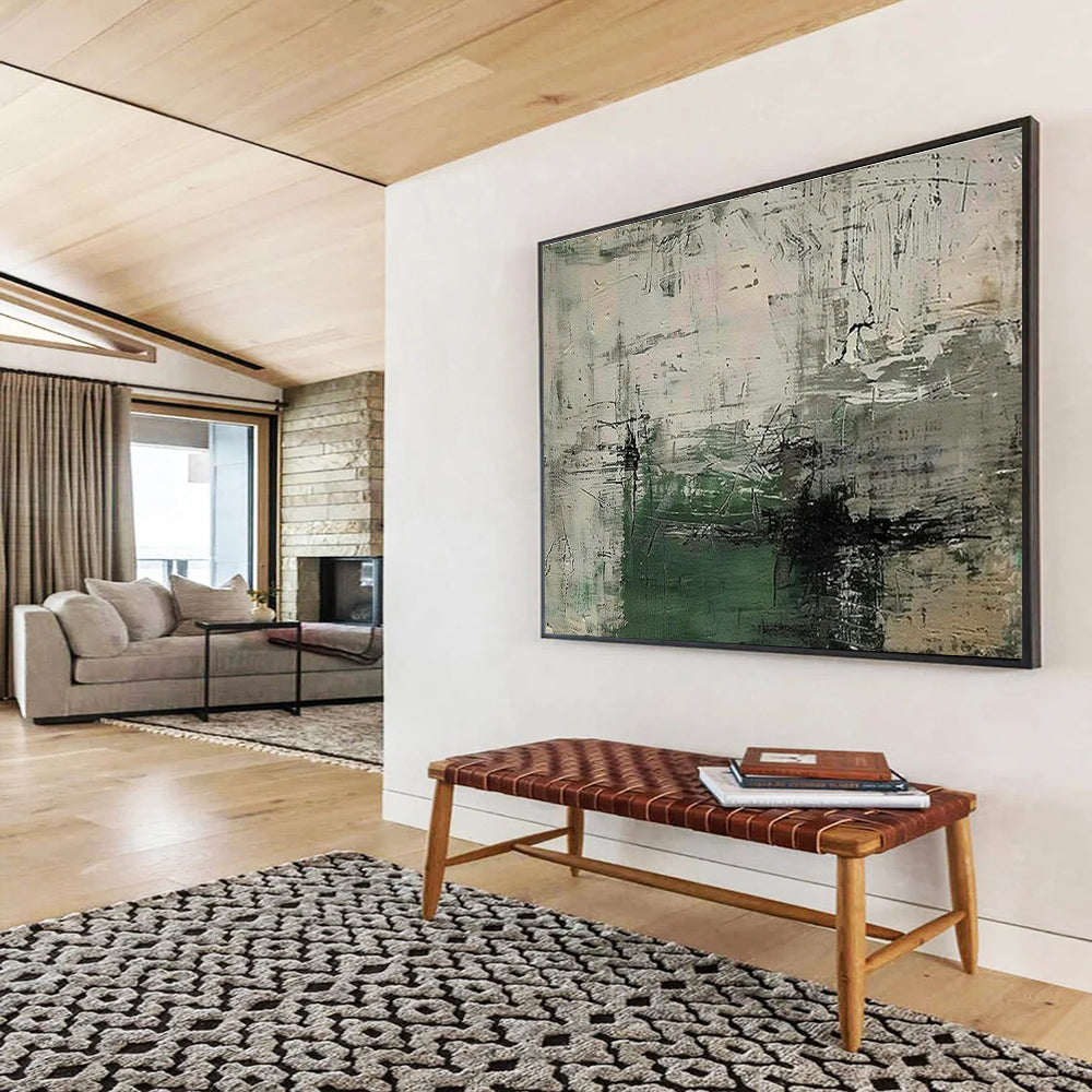 Create a calm, minimalist office waiting room with this gray - green abstract art. Soft, muted tones and understated forms promote relaxation, helping clients feel at ease. Ideal for a professional space wanting a touch of subtle artistry, it elevates the ambiance without distraction, reflecting a refined corporate aesthetic.Handmade Acrylic/oil painting on canvas, Unframed/Not stretched. Packing: Rolled and shipped in a solid tube. The painting come with EXTRA 2-3 inch white border around for stretching or framing. Delivery time: You will receive the painting around 7-12 days( 3-5 days to finish the painting, 5-7 days to your home.by Fedex And Dhl)
