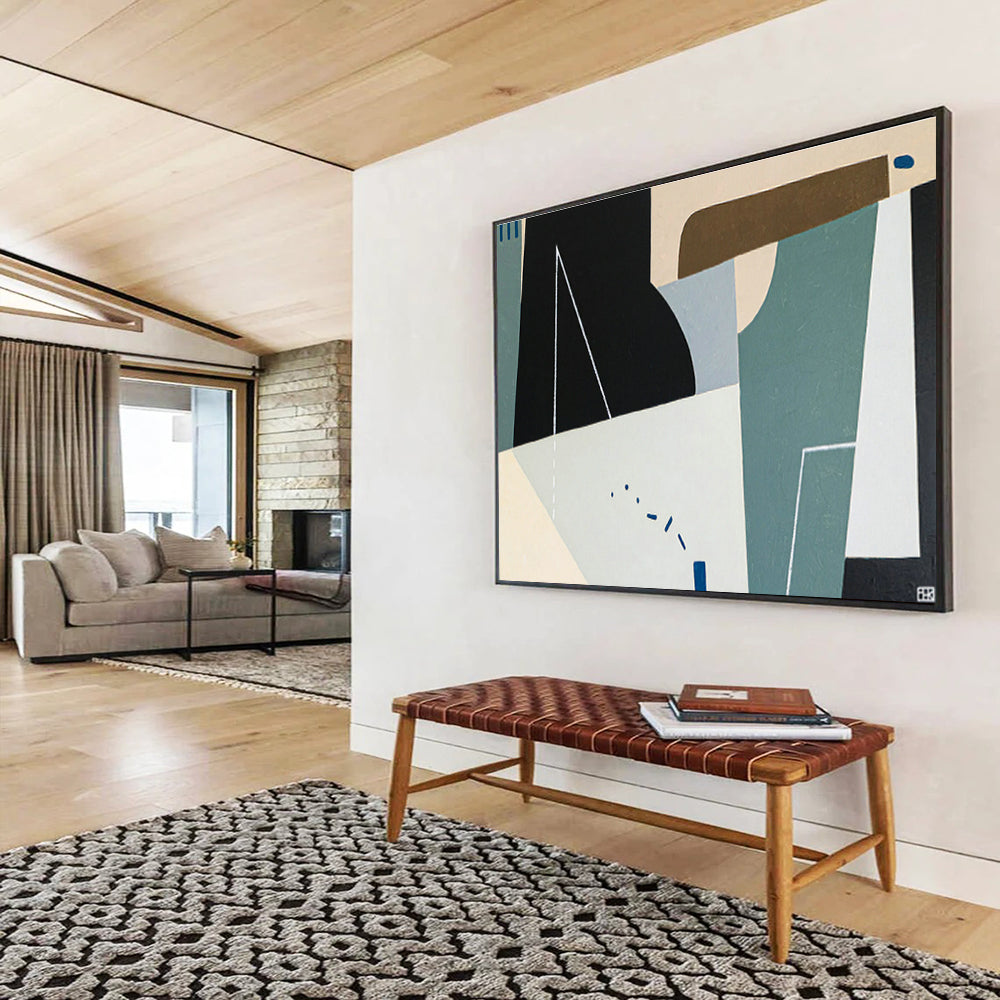 Calm grays, greens, and clean geometry fit a minimalist office. It brings a professional, understated elegance, creating a focused workspace. Perfect for modern, sleek office interiors.Handmade Acrylic/oil painting on canvas, Unframed/Not stretched. Packing: Rolled and shipped in a solid tube. The painting come with EXTRA 2-3 inch white border around for stretching or framing. Delivery time: You will receive the painting around 7-12 days( 3-5 days to finish the painting, 5-7 days to your home.by Fedex And Dhl)