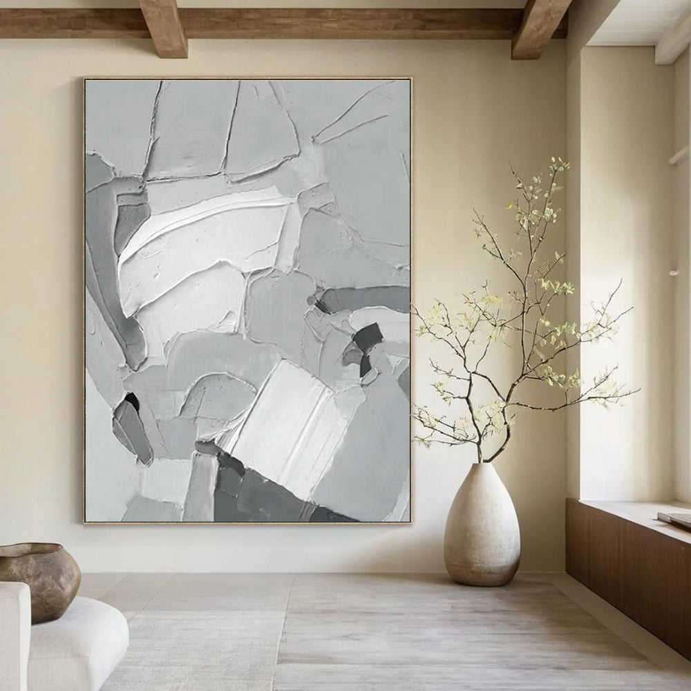 Monochromatic textures and shapes feel modern and edgy. In an industrial loft, display it in the open - plan area – the gray tones blend with exposed pipes and concrete, enhancing the loft’s urban cool. At an architecture firm, hang it in the meeting room – the textured art inspires discussions about form and structure, turning office brainstorming into a creative, artistic exploration.Handmade Acrylic/oil painting on canvas, Unframed/Not stretched. Packing: Rolled and shipped in a solid tube. The painting come with EXTRA 2-3 inch white border around for stretching or framing. Delivery time: You will receive the painting around 7-12 days( 3-5 days to finish the painting, 5-7 days to your home.by Fedex And Dhl)