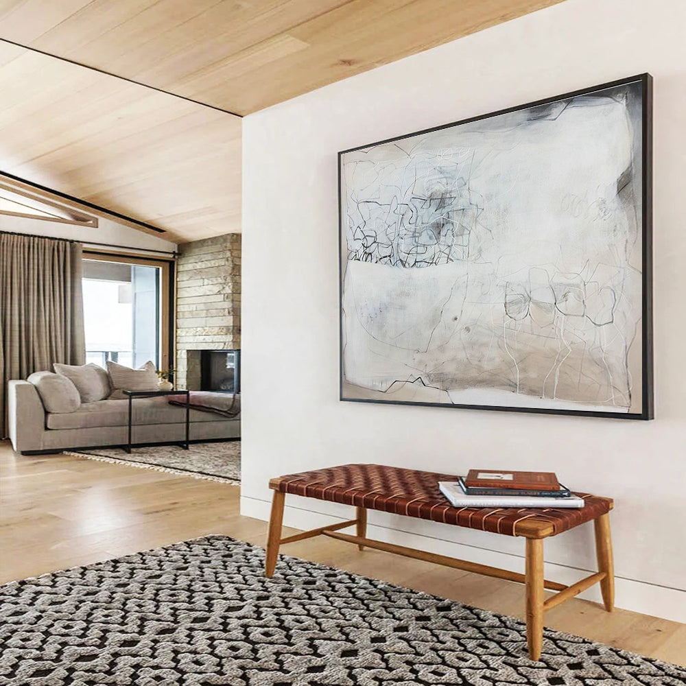 Welcome guests with this gray - white minimalist abstract in your modern hallway. Its clean lines and neutral palette set a sleek, contemporary tone. A perfect fit for modern homes, it transforms a simple hallway into an artful entry.Handmade Acrylic/oil painting on canvas, Unframed/Not stretched. Packing: Rolled and shipped in a solid tube. The painting come with EXTRA 2-3 inch white border around for stretching or framing. Delivery time: You will receive the painting around 7-12 days( 3-5 days to finish the painting, 5-7 days to your home.by Fedex And Dhl)