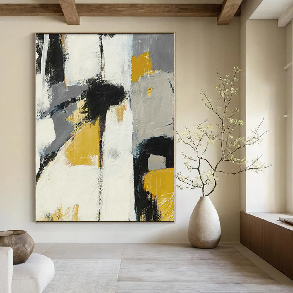 Gray, Yellow, and Black Abstract Art for Industrial Loft & Modern Art Bar DLZ2225
