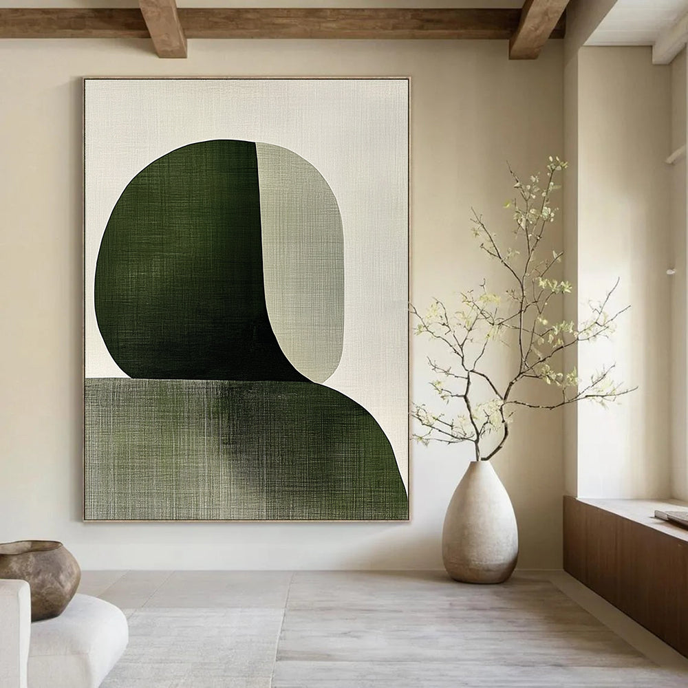 Inspired by the organic shapes of nature and the simplicity of neutral tones, the artist painted overlapping green and beige forms. The textured surface adds depth and a tactile quality. It’s a piece that evokes a sense of calm and connection to nature. In a nature - inspired yoga studio, it helps create a peaceful, grounding environment for practice. In a modern home library, it adds a touch of understated elegance, complementing the space for reading and reflection.Handmade Acrylic/oil painting on canvas, Unframed/Not stretched. Packing: Rolled and shipped in a solid tube. The painting come with EXTRA 2-3 inch white border around for stretching or framing. Delivery time: You will receive the painting around 7-12 days( 3-5 days to finish the painting, 5-7 days to your home.by Fedex And Dhl)