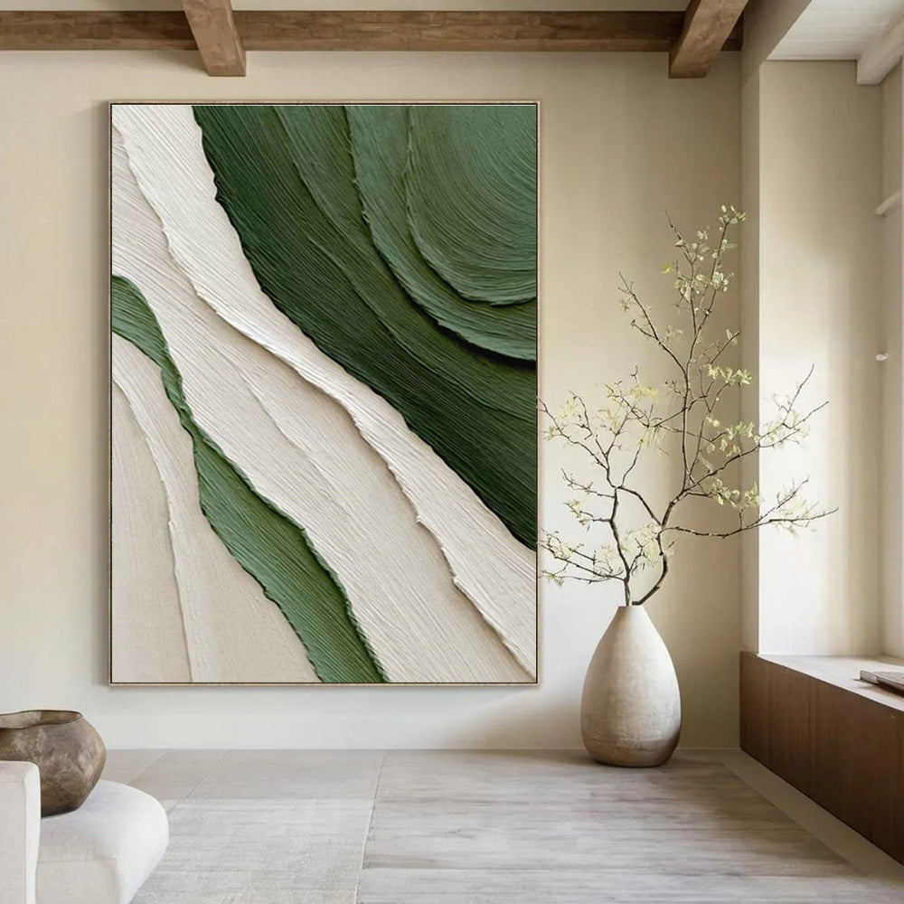 Green and White Textured Waves Art for Modern Beach House & Eco - Friendly Caf茅 DLZ2181