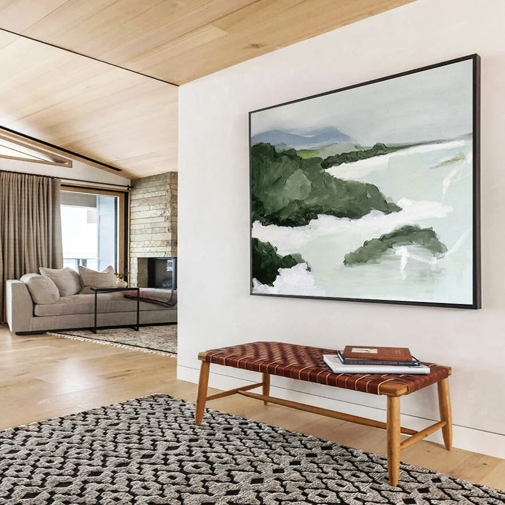 Soft greens, tranquil blues, and a serene landscape suit a nature - themed spa. It helps guests unwind, turning the space into a peaceful, artistically calming retreat.Handmade Acrylic/oil painting on canvas, Unframed/Not stretched. Packing: Rolled and shipped in a solid tube. The painting come with EXTRA 2-3 inch white border around for stretching or framing. Delivery time: You will receive the painting around 7-12 days( 3-5 days to finish the painting, 5-7 days to your home.by Fedex And Dhl)