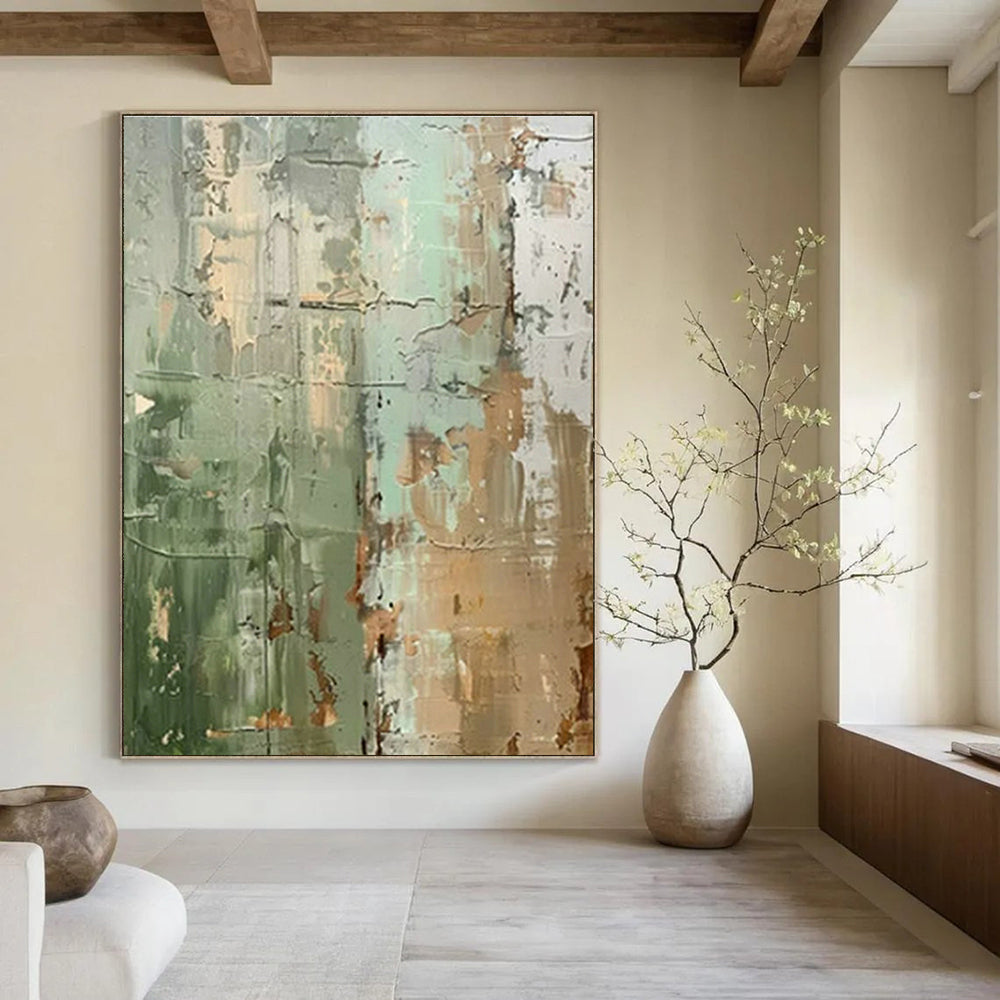 Green - Brown Textured Abstract Art for Rustic Home Library & Eco - Friendly Art Gallery DLZ1741