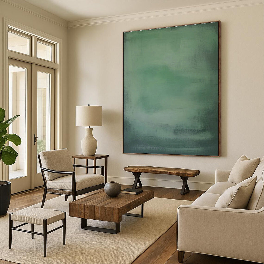 Subtle green gradients create a soothing, nature - like backdrop. In an eco - friendly yoga studio, with sustainable mats and plant - filled corners, it enhances the peaceful, earth - connected vibe. The green tones align with the studio’s eco - mission, helping yogis focus during practice. In a botanical home bedroom, with floral prints and hanging plants, it complements the natural decor. The gentle gradient promotes relaxation, turning the bedroom into a serene sanctuary where you can drift off to sleep surrounded by calming, green - inspired art.Handmade Acrylic/oil painting on canvas, Unframed/Not stretched. Packing: Rolled and shipped in a solid tube. The painting come with EXTRA 2-3 inch white border around for stretching or framing. Delivery time: You will receive the painting around 7-12 days( 3-5 days to finish the painting, 5-7 days to your home.by Fedex And Dhl)
