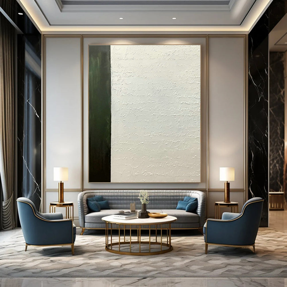 Intricate white calligraphy on a green background creates a vintage - inspired, literary vibe. In a home library, it pairs with bookshelves and leather chairs, adding a touch of elegance to reading sessions. The raised text invites touch, making it a tactile experience for book lovers. In a vintage café, it complements retro signage and wooden tables, enhancing the nostalgic atmosphere as customers enjoy coffee or pastries. The unique design makes it a conversation starter, whether in a quiet library or a bustling café. This art blends literature and vintage charm, transforming spaces into havens of knowledge and relaxation.Handmade Acrylic/oil painting on canvas, Unframed/Not stretched. Packing: Rolled and shipped in a solid tube. The painting come with EXTRA 2-3 inch white border around for stretching or framing. Delivery time: You will receive the painting around 7-12 days( 3-5 days to finish the painting, 5-7 days to your home.by Fedex And Dhl)