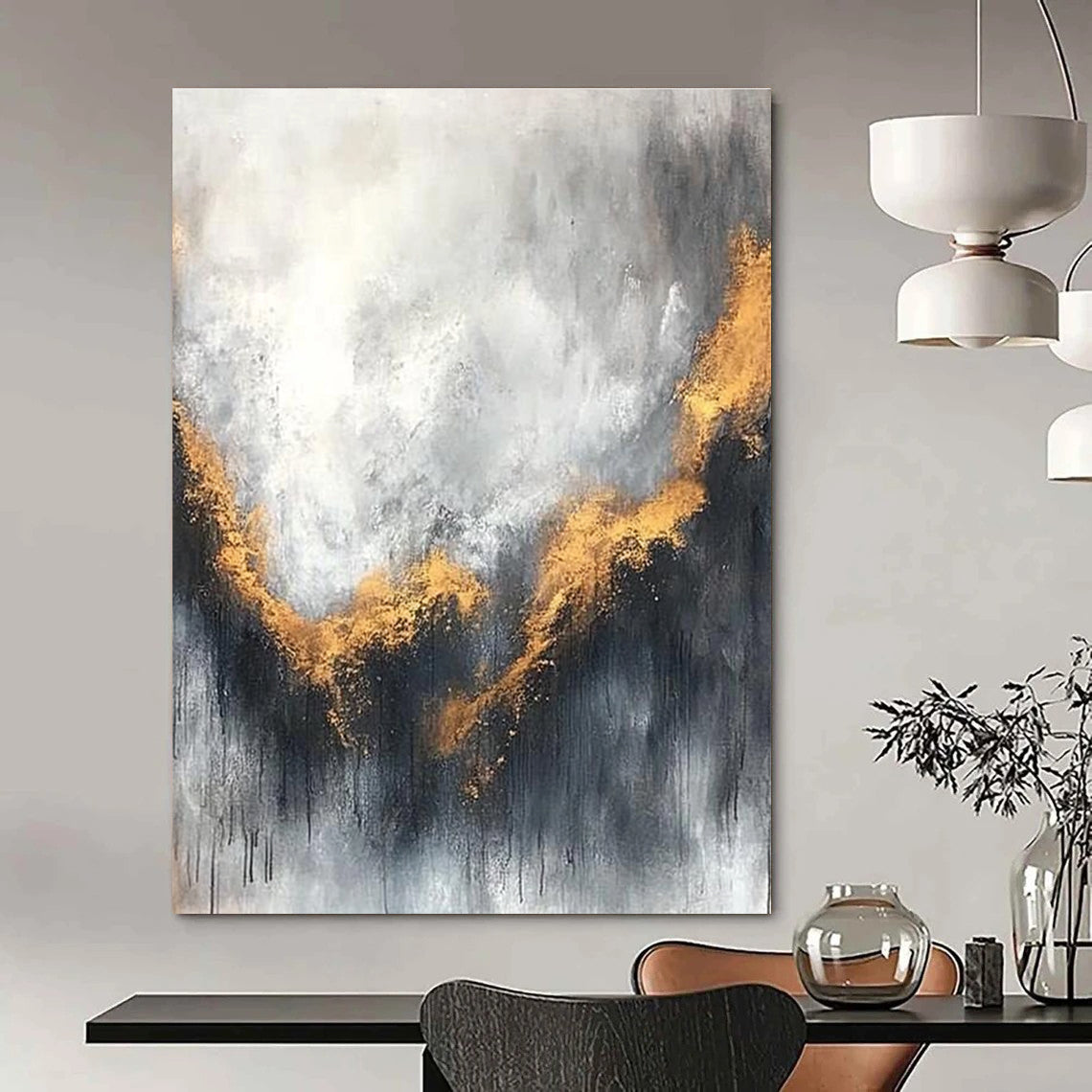 Focused on the interplay of shape and metallic luxury, the artist painted curved gold shapes on a grey background. The abstract style invites viewers to explore the forms’ fluidity. Perfect for a modern art gallery to showcase contemporary, expressive art or a creative studio to inspire innovative, artistic thinking.Handmade Acrylic/oil painting on canvas, Unframed/Not stretched. Packing: Rolled and shipped in a solid tube. The painting come with EXTRA 2-3 inch white border around for stretching or framing. Delivery time: You will receive the painting around 7-12 days( 3-5 days to finish the painting, 5-7 days to your home.by Fedex And Dhl)