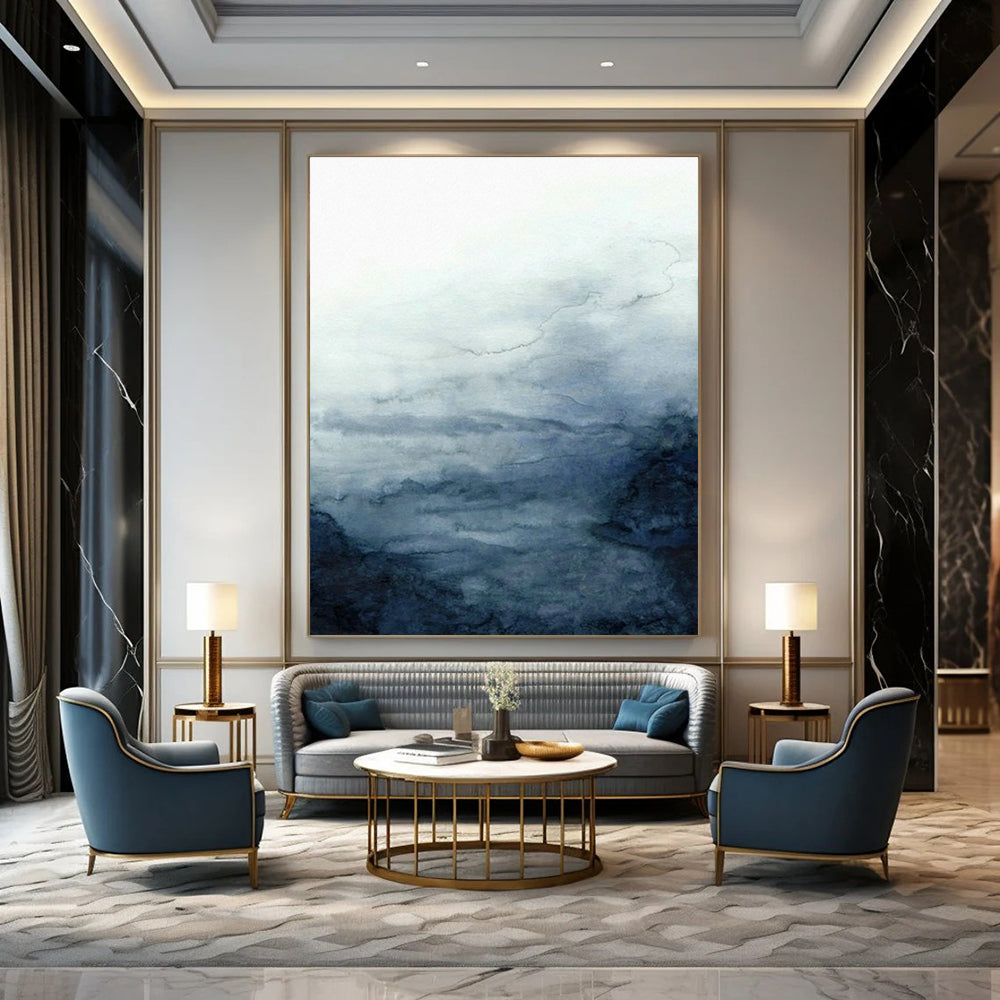 Soft blue - gray washes mimic misty clouds. In a traditional Chinese study, with scrolls and ink brushes, it adds cultural depth—hang it above a writing desk, inspiring poetic thoughts. At a rainy - day bookstore with vintage tomes and cozy reading nooks, it sets a contemplative mood. The watercolor subtlety and cloud - like forms make reading or studying feel like a quiet escape into a misty, literary world.Handmade Acrylic/oil painting on canvas, Unframed/Not stretched. Packing: Rolled and shipped in a solid tube. The painting come with EXTRA 2-3 inch white border around for stretching or framing. Delivery time: You will receive the painting around 7-12 days( 3-5 days to finish the painting, 5-7 days to your home.by Fedex And Dhl)