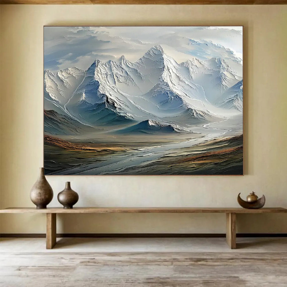 Towering, icy peaks inspire awe. Perfect for ski resorts, it elevates luxury, turning check - ins into grand entrances to a world of snowy, artistic wonder.Handmade Acrylic/oil painting on canvas, Unframed/Not stretched. Packing: Rolled and shipped in a solid tube. The painting come with EXTRA 2-3 inch white border around for stretching or framing. Delivery time: You will receive the painting around 7-12 days( 3-5 days to finish the painting, 5-7 days to your home.by Fedex And Dhl)