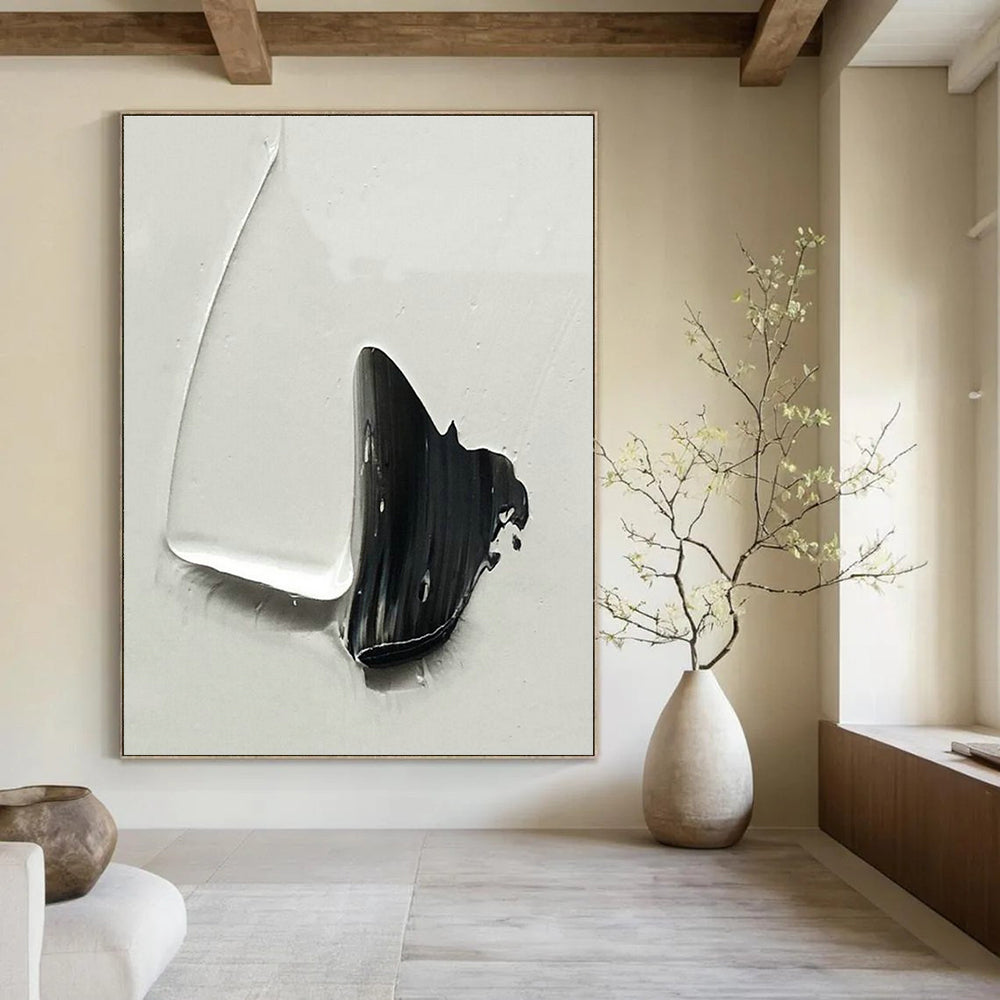 Through simple black and white forms, the artist explores the essence of minimalism. The clean lines and shapes encourage viewers to focus on the basics. Perfect for a contemporary home to maintain a sleek, uncluttered look or a design studio to inspire minimalist design concepts.Handmade Acrylic/oil painting on canvas, Unframed/Not stretched. Packing: Rolled and shipped in a solid tube. The painting come with EXTRA 2-3 inch white border around for stretching or framing. Delivery time: You will receive the painting around 7-12 days( 3-5 days to finish the painting, 5-7 days to your home.by Fedex And Dhl)