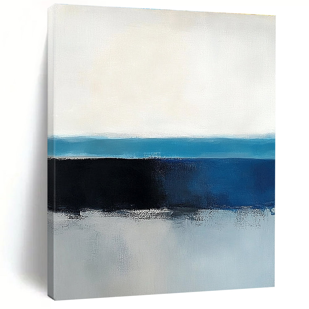 Focused on simplicity and balance, the artist painted clean horizontal lines. The muted blues and whites create a sense of tranquility and order. Great for a modern office to promote focus or a Scandinavian - style home to enhance minimalist, serene decor.Handmade Acrylic/oil painting on canvas, Unframed/Not stretched. Packing: Rolled and shipped in a solid tube. The painting come with EXTRA 2-3 inch white border around for stretching or framing. Delivery time: You will receive the painting around 7-12 days( 3-5 days to finish the painting, 5-7 days to your home.by Fedex And Dhl)